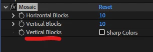 The Mosaic effect's Sharp Colors parameter seems to be named Vertical Blocks.