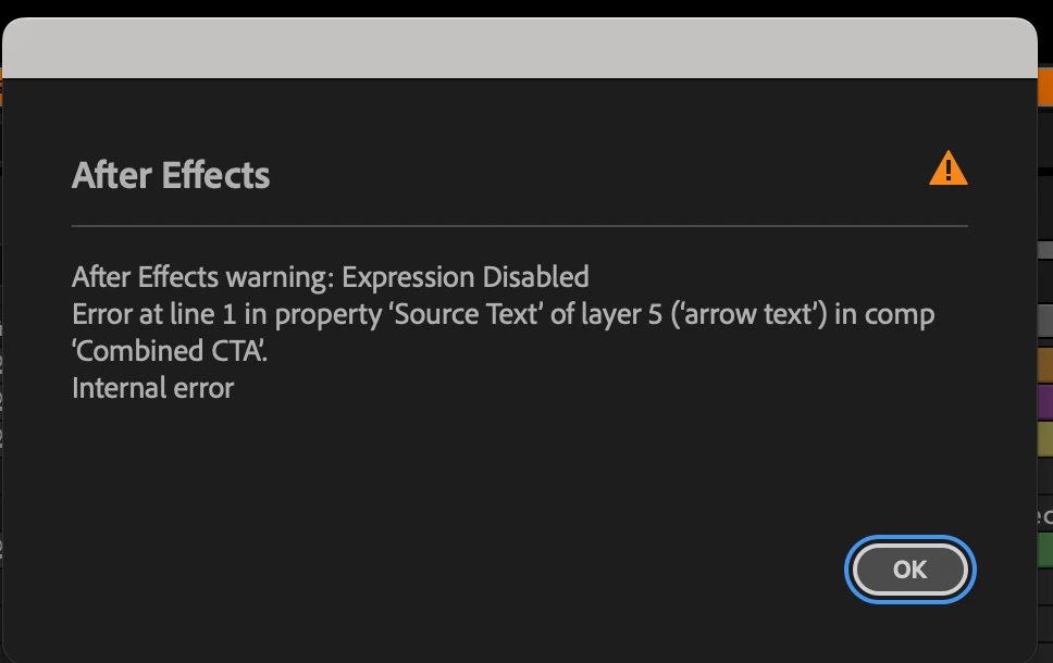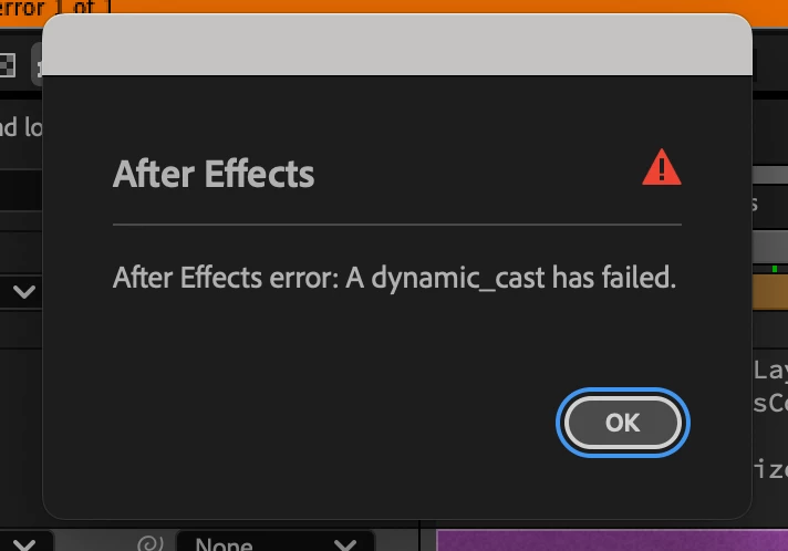 After Effects error: A dynamic_cast has failed.
