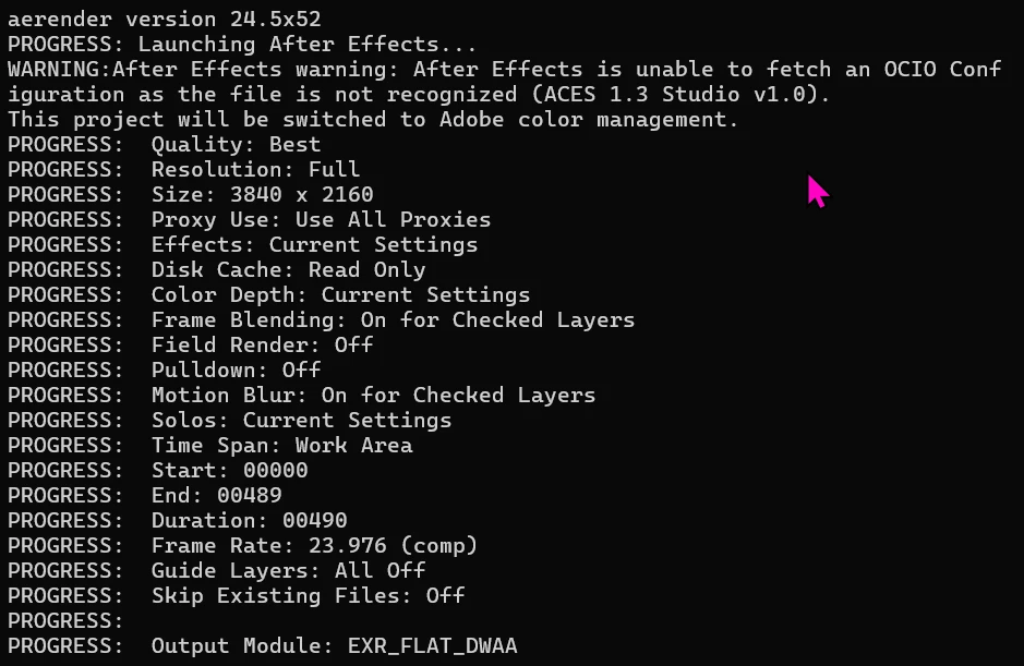 OCIO not loading in CMD - aerender