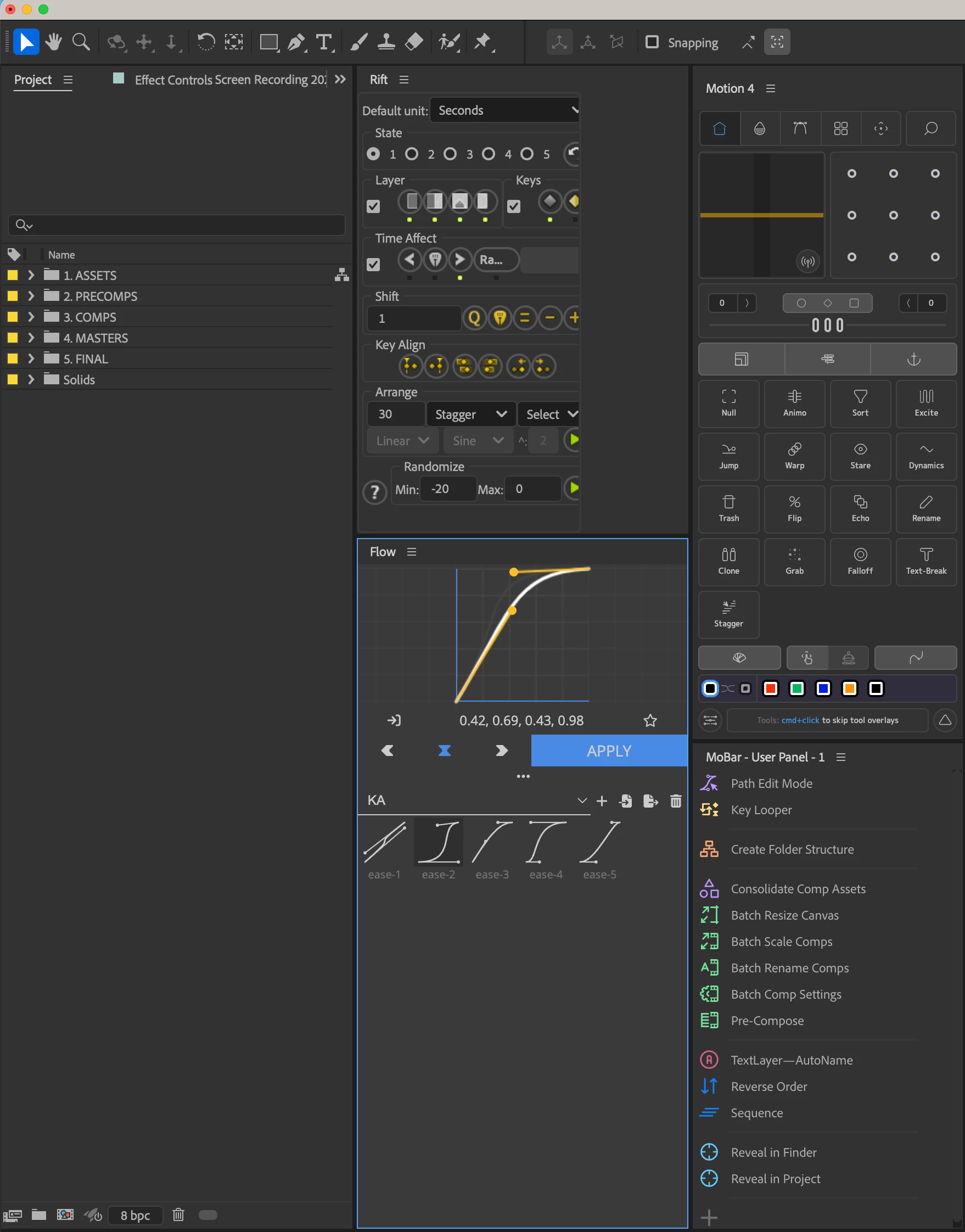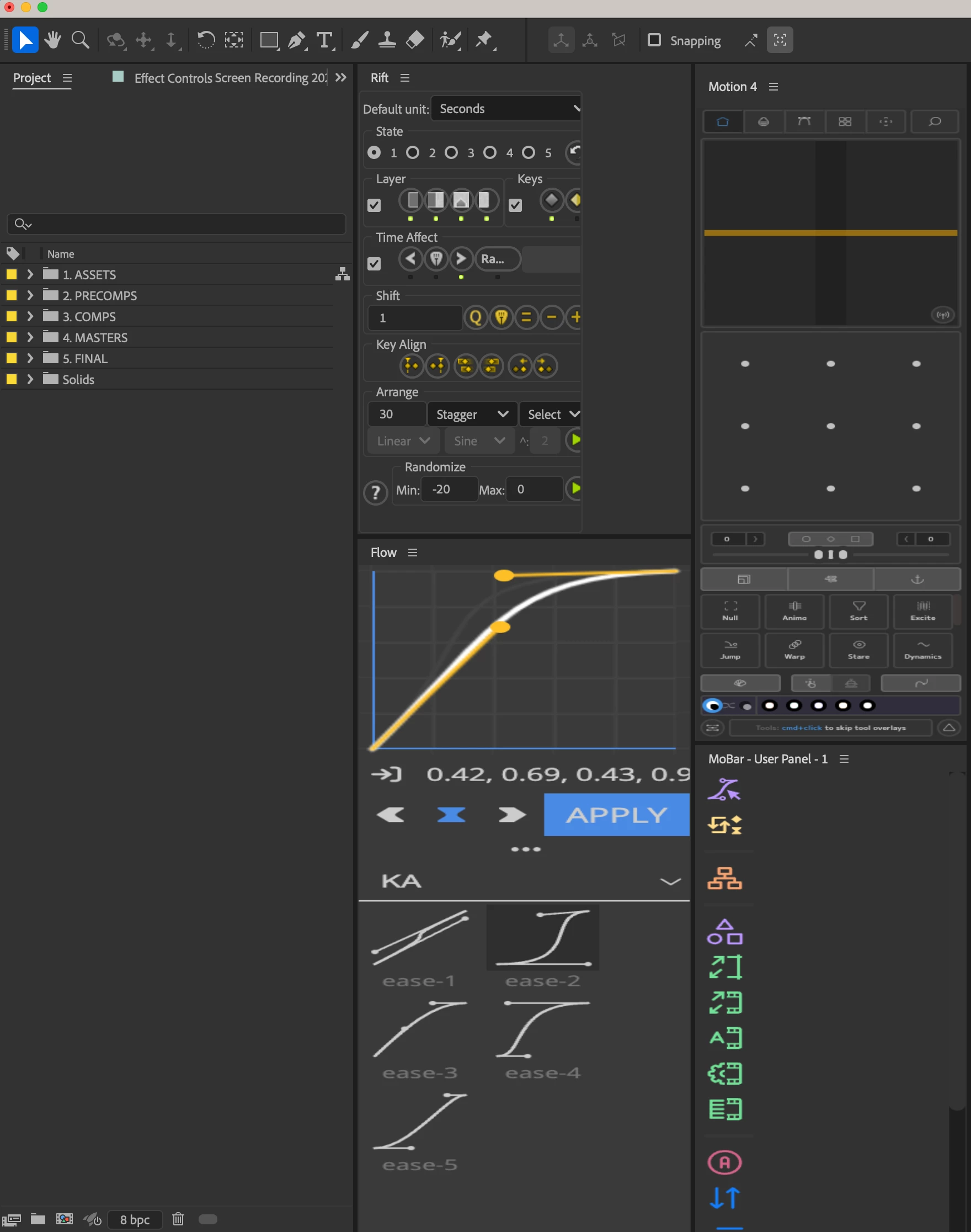 When MacBookPro M3 Max wakes up from screensaver, plugin panels with modern UI like Motion4, Flow, MoBar change it's appearance - distort and scale up with blur, while older script panels like Rift with simpler UI stay the same. It only happens if After Effects is on secondary display (DELL P2715Q). When I hover with mouse over distorted panel, it's UI refreshes to normal state. Attached are screenshots with normal and distorted UI.