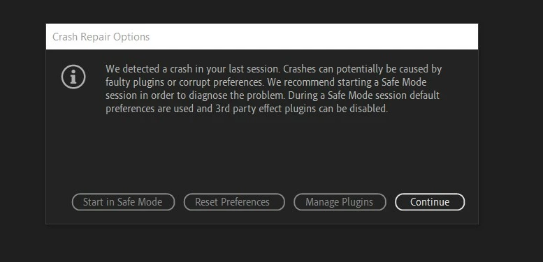 And when I open the application again, this message appears