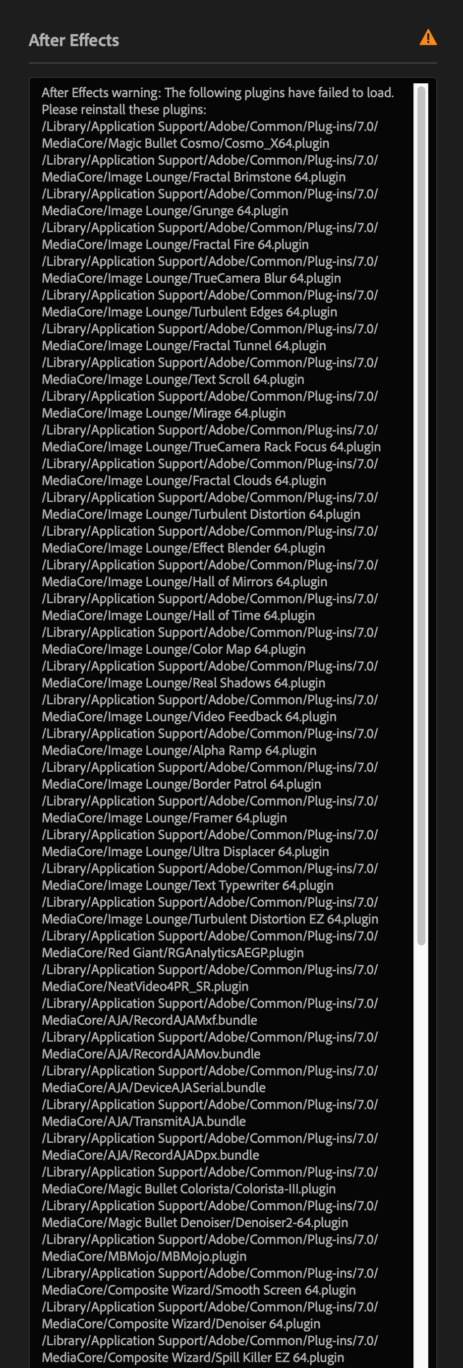 I've recently upgraded after effects 25.2.2 and a lot of plugins are not loading at start up. This only started with the lates 25.2 update. There doesnt seem to be a documented method for removing them and t