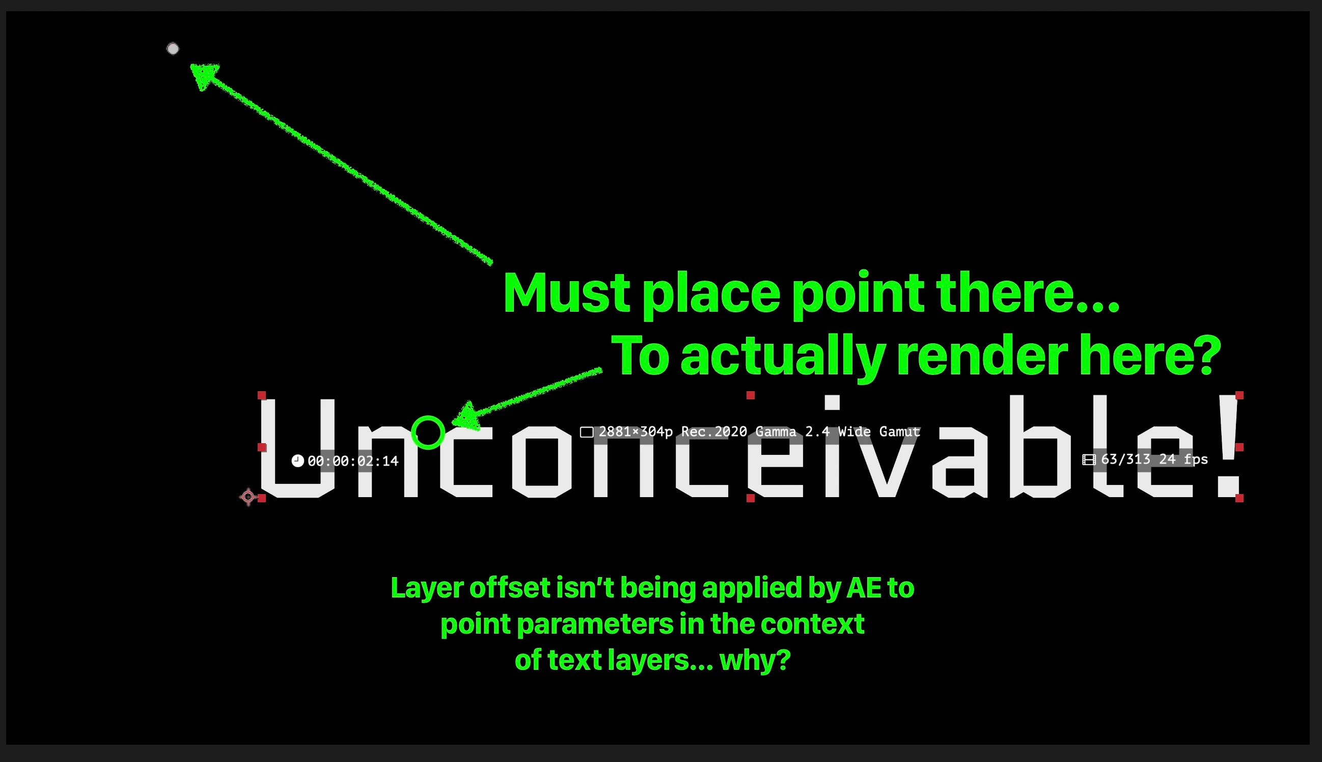 Under all these scenarios, AE appears to be setting the origin_x/_y members of the output PF_LayerDef correctly. But whereas the offset appears to be automatically applied to point coordinates in the first two cases, AE is not applying the offset in the third case (title layer).