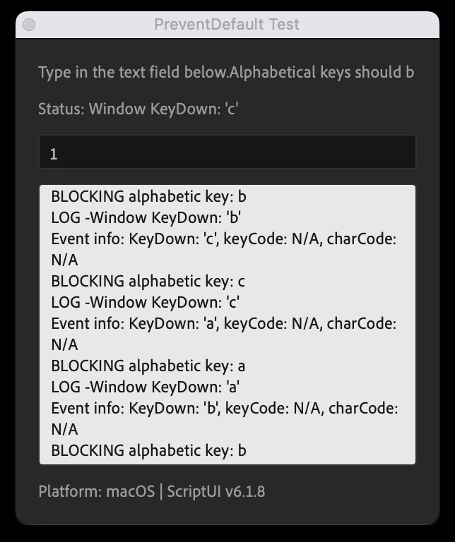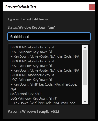 I'm building a script UI panel as part of an extension that involves keyboard controls. I believe I've encountered a fundamental bug with the .preventDefault function/method, at least when assigned as an event listener to an edittext control object. In short, it only works on Mac—the method appears to be non-functional on Windows.