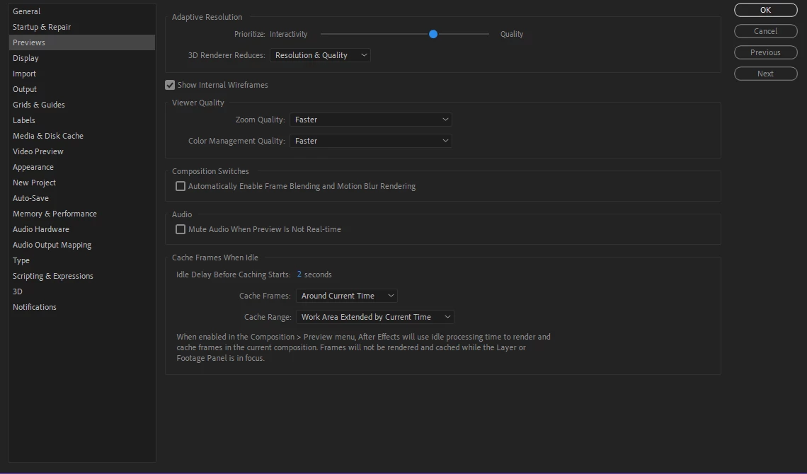 Attached are my base computer specs as well as screenshots of my "Previews" "Video Preview" and "Media and Disk Cache" settings in Adobe After Effects 2024.