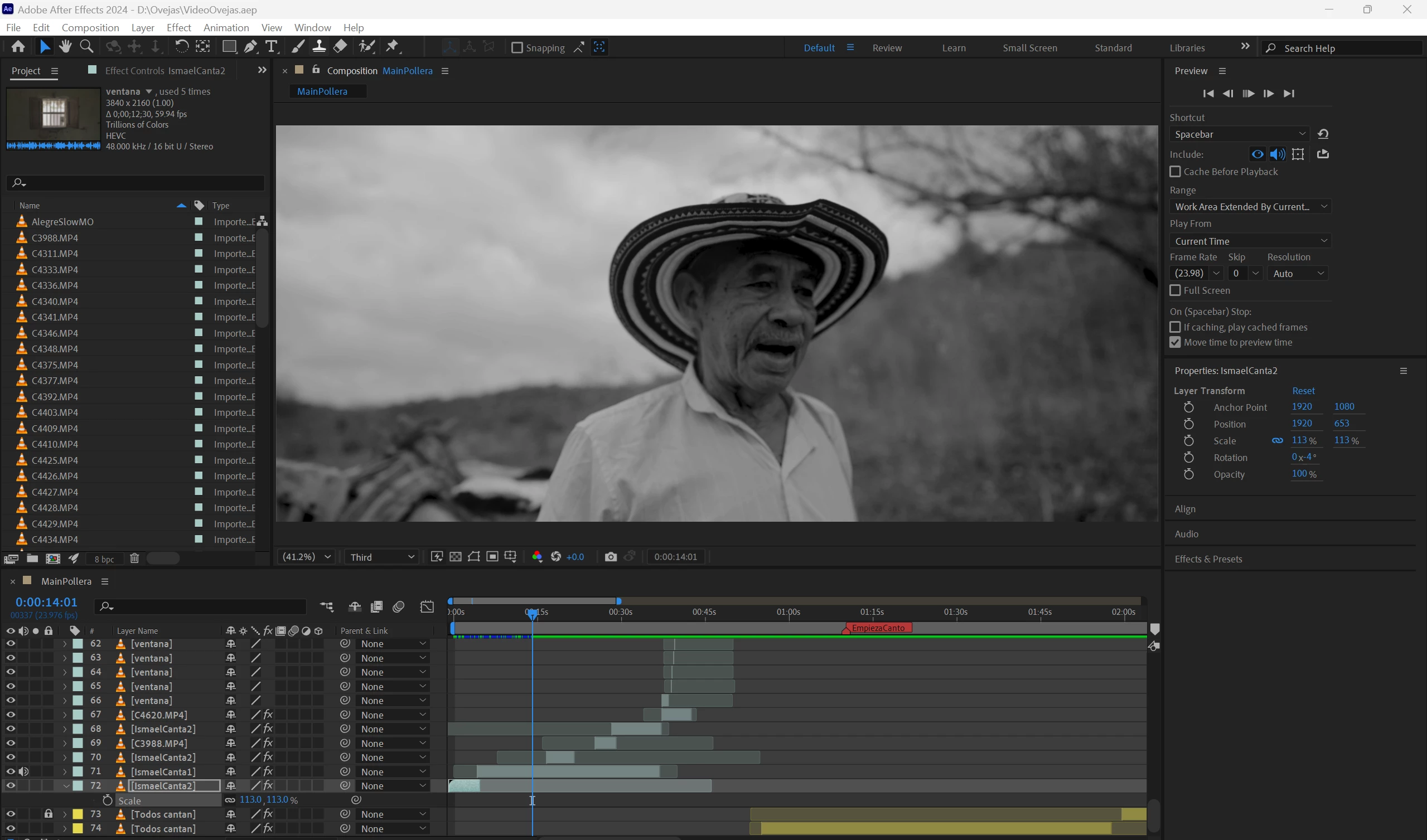 La previsualización (que siemrpe activo con la barra espaciadora) está totalmete congelada, no avanza, sólo funciona durante algunos fotogramas cuando reinicio el programa o el pc, pero vuelve a estancarse.