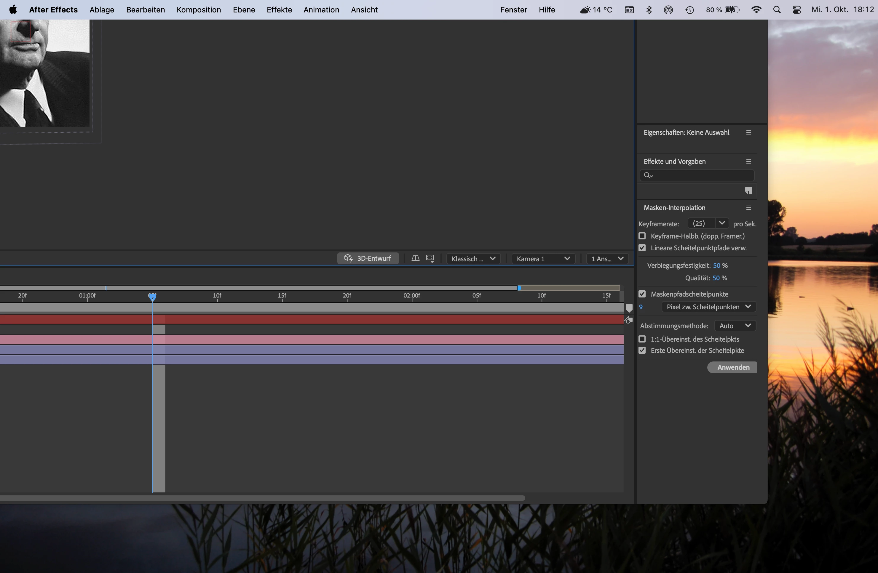 Ich arbeite mit einem zweiten Bildschirm an meinem MacBook. Das Programmfenster von After Effects öffnet sich auf dem MacBook und passt sich nicht an die Bildschirgröße an. Es ist viel zu groß. Wie bekomme ich es passend? Die linke obere Ecke ist nicht erreichbar. Und wie kann ich das Programmfenster auf meinen großen Hauptbildschirm ziehen?