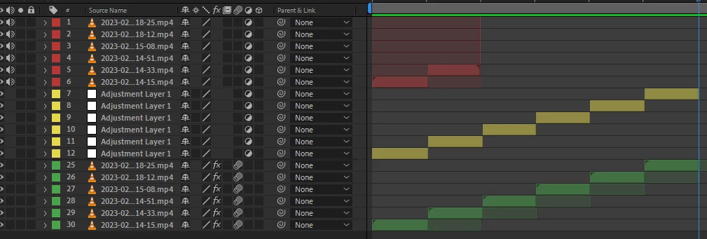 I am writing to report a bug I have encountered in the latest version of After Effects (v23.1.0). In previous versions of the software, it was possible to split a new layer into multiple cuts and then easily replace those layers with footage. However, in the latest version, when I attempt to replace the footage using the steps below, the result is not as expected.