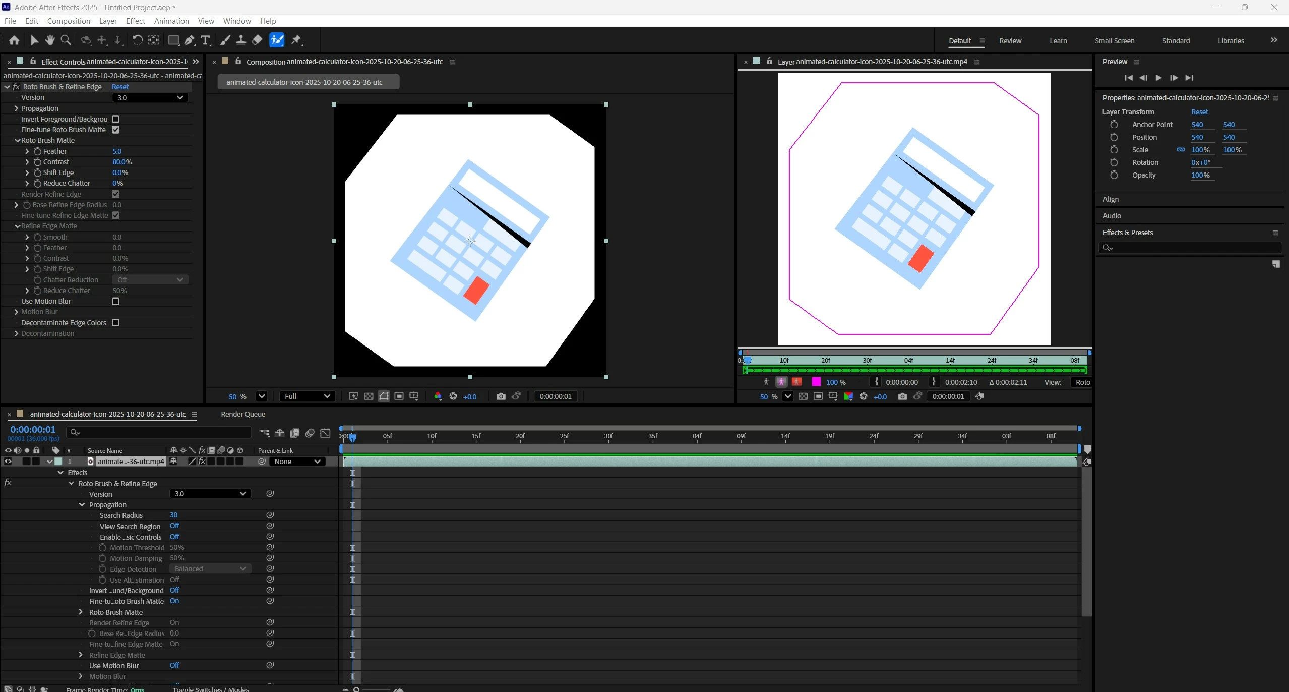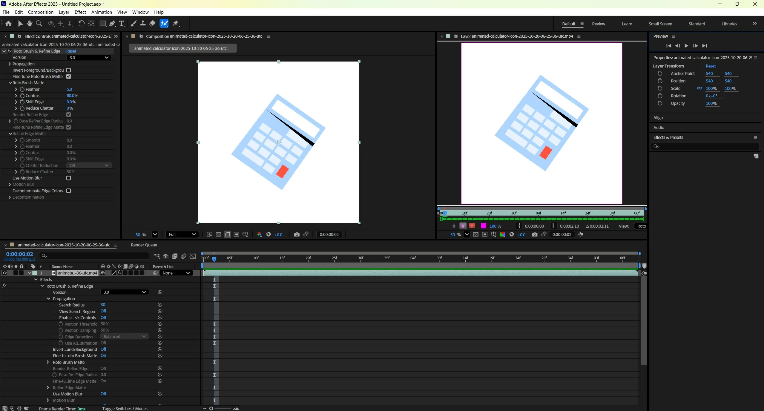 I'm using AE on a PC. When I use Roto Brush 3.0 and mask a person with say a white background the mask only lasts for 2 frames before selecting the whole screen. When I change the selection to Roto Brush 2.0, it renders properly. I've tried multiple videos. I've tried reinstalling. But I still get this issue which means I can't use roto brush 3.0.