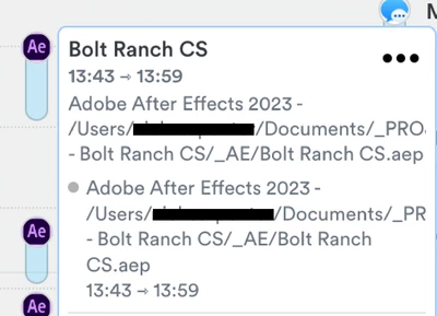 Below I've included screenshots of how Timely read After Effects before this update (showing full file name and file path) and after (only displaying "After Effects" and no further detail).