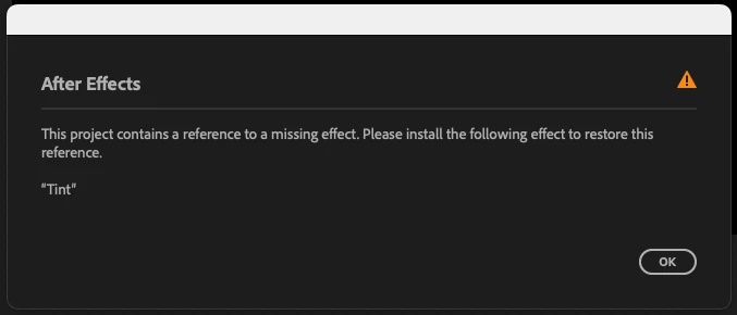 So, I was merrily working along when After Effects (25.1.0 Build 68 on a 2023 Mac Studio) gave me an error, saying I was missing the "Tint" plugin. After trying all the usual methods to rectify the situation (running about the room in a panic flapping my arms around in an alarming manner, opening the same file fifteen times in a row hoping that would magically fix things, and experimental cursing) I tried resetting my plugin manager, to no avail. I checked and the plugin DOES exist in my "Adobe After Effects 2025 > Plug-ins > Effects" folder, which confuses me a bit. I tried moving the plugin in the desktop and back into the folder again to reset things but that didn't work. I verified that my Project Settings were set to use "Mercury Software Only." I can't find the effect online anywhere to reinstall just the plugin, so finally I tried uninstalling After Effects and all my plugins altogether and reinstalling the software, but I still get the same error when I open a project wherein I used the Tint effect. And indeed, while I can SEE the tint effect in After Effects (it's now in a folder called "Missing") the effect doesn't work if I try to use it.