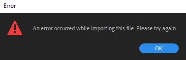 Ae tries to import the .FLA file for around 30 seconds before bringing up a box with this error message every time. (I've attached a screen shot).