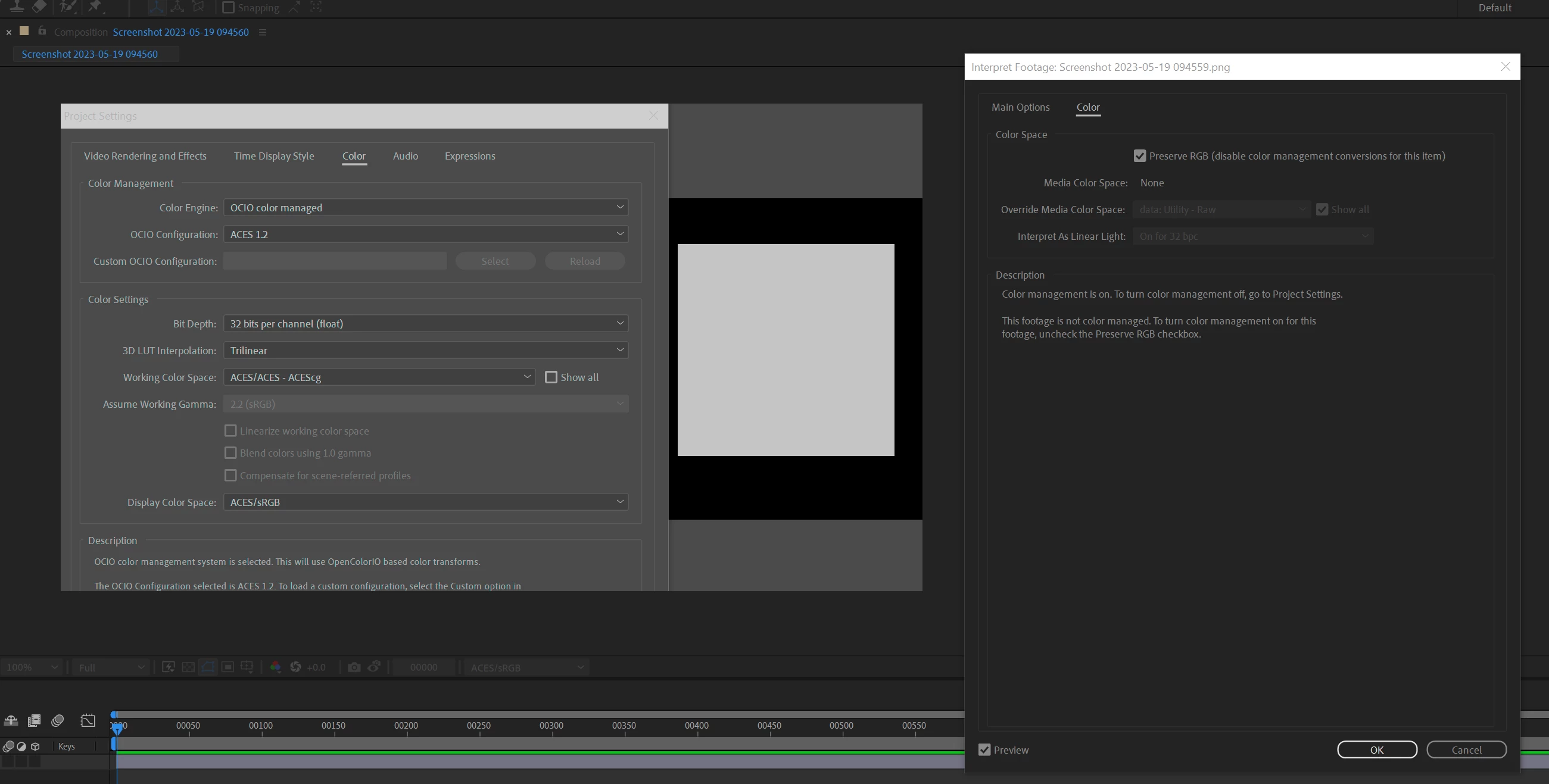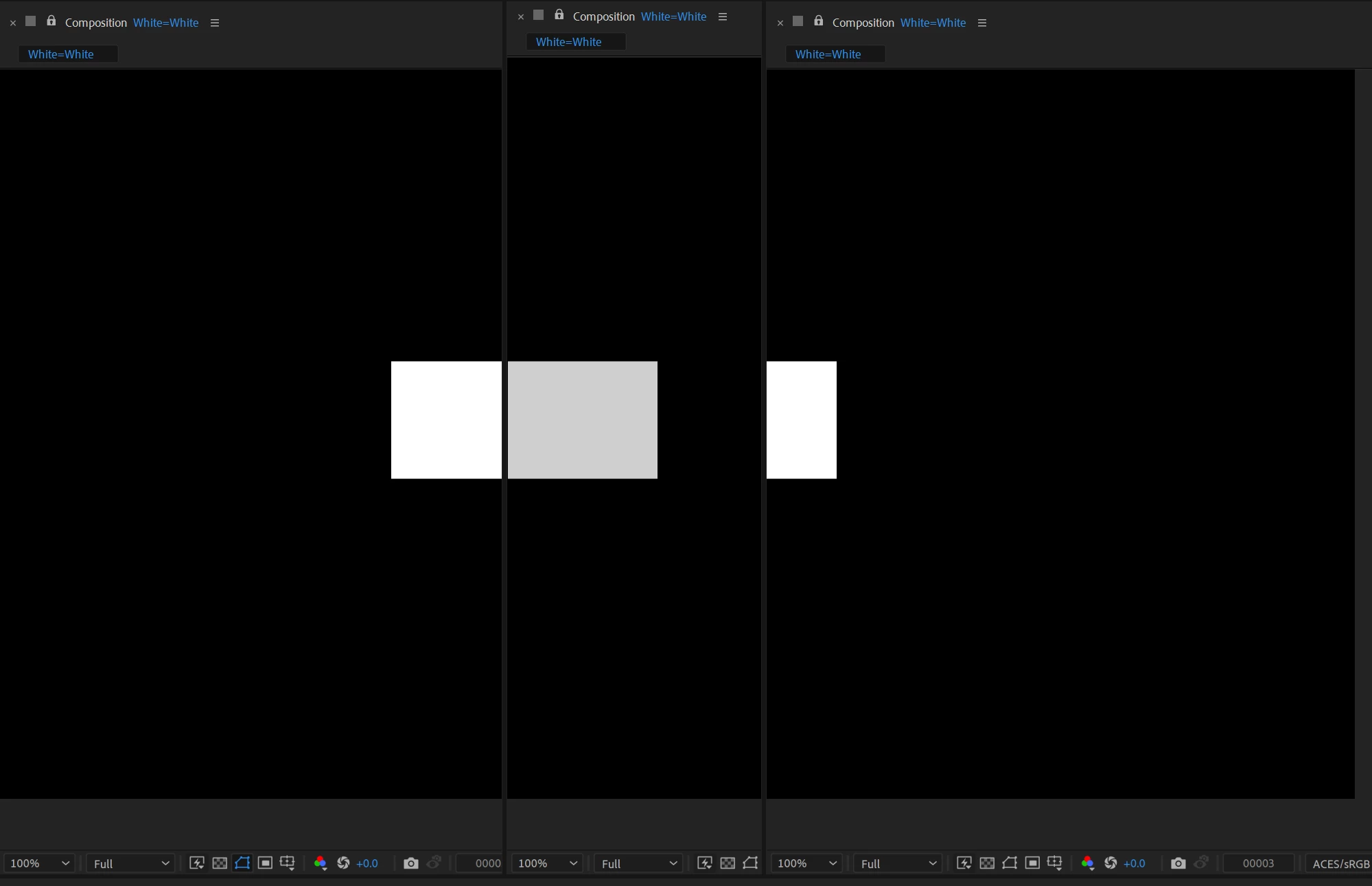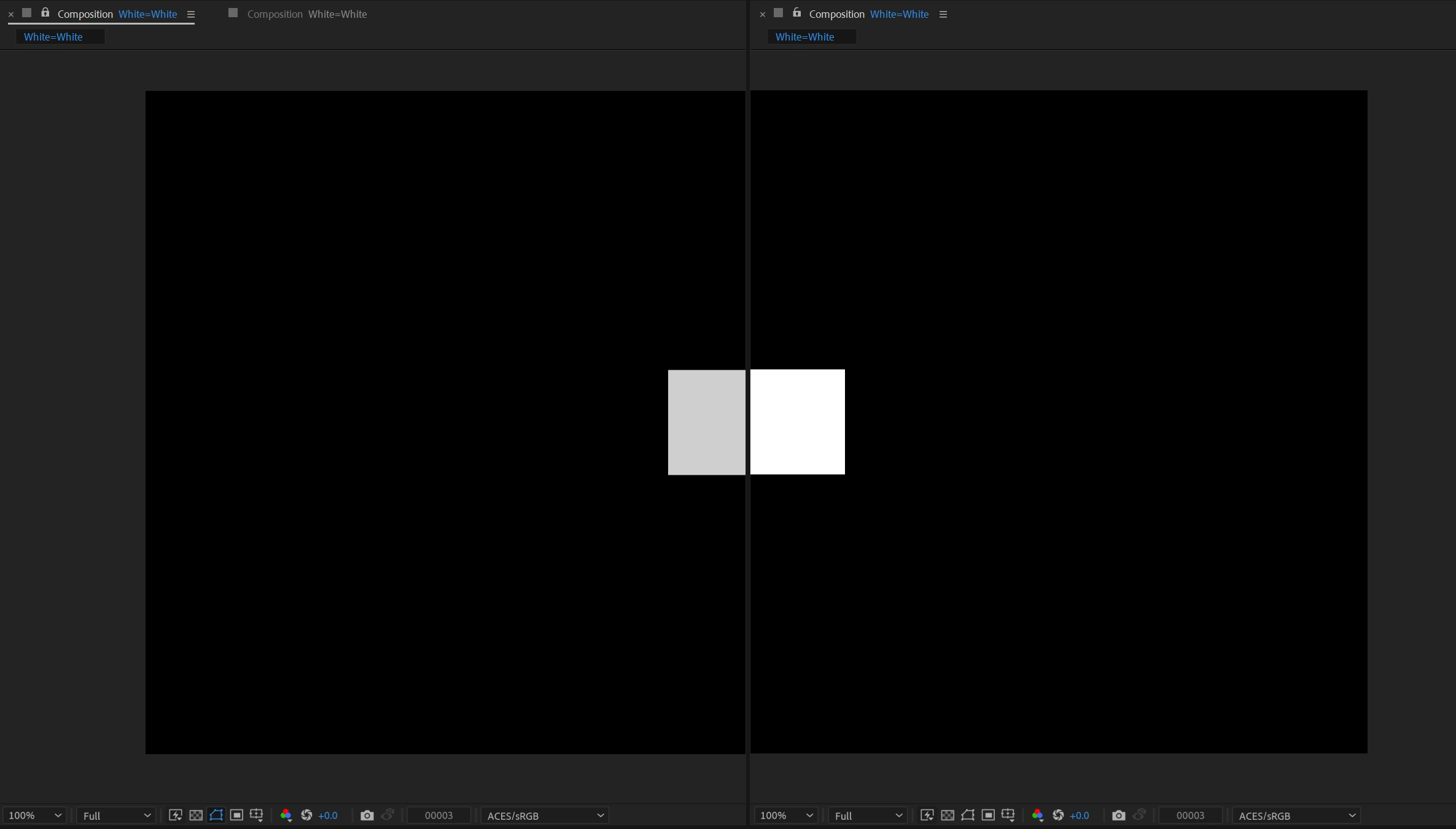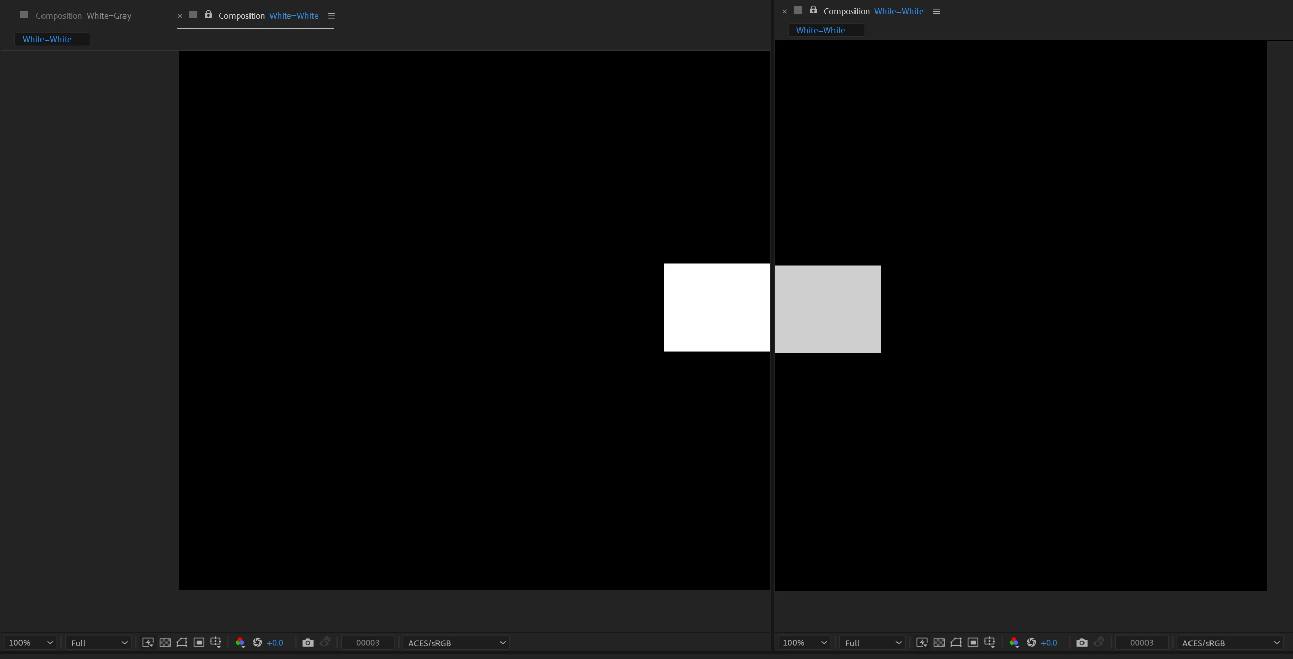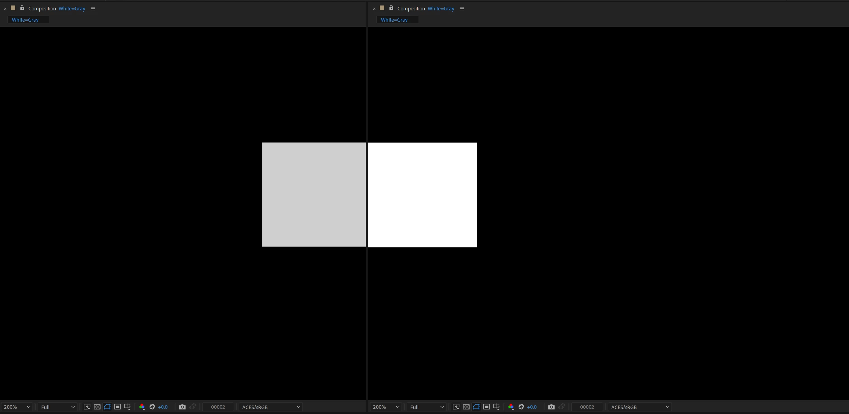See attached AE file. The project settings are using ACES. However, the two comps in this project treat white differently, and I am using the same display transforms. I have noticed that comps will randomly start interpretting FFFFFF hex values incorrectly. Currently the only workaround that I am aware of is to duplicate the comp that works. I don't know what triggers this bad result to happen. Any advice?