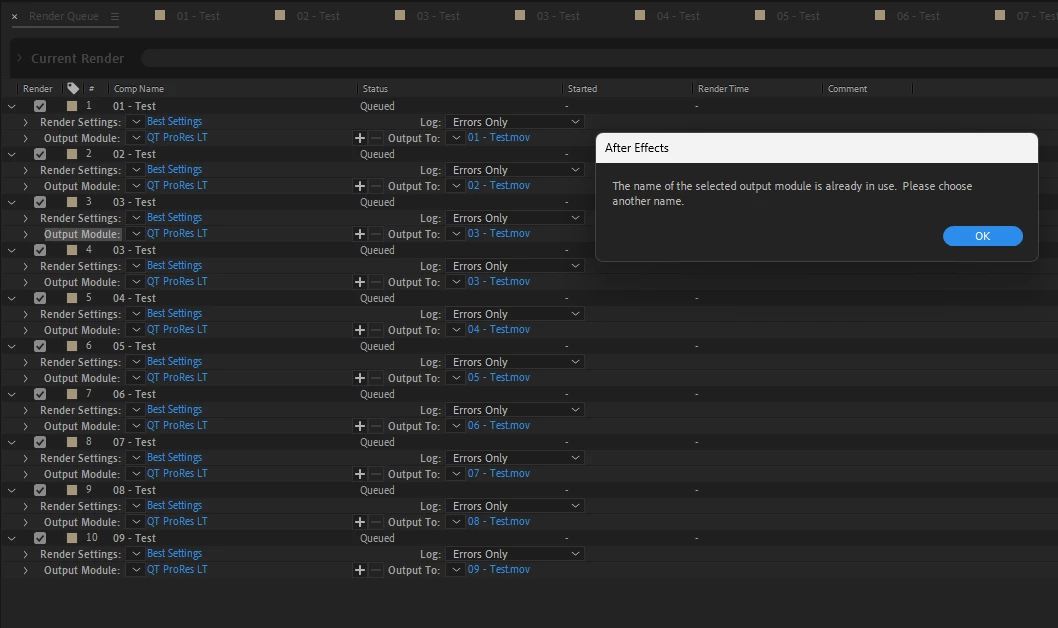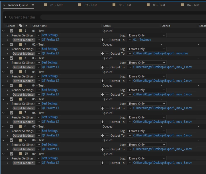 But, for some reason the rest are named "_mov.mov", "_mov_1.mov", "_mov_2.mov", etc, etc. You can see it on the screen dump and you can also see the name of the Comps. If i hit Enter to start the render the files are indeed named "_mov.mov", "_mov_1.mov", "_mov_2.mov", etc, etc and thats useless.