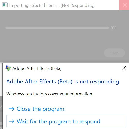 Importing PSD files freezes Ae and consequentially requires forced closing the software.