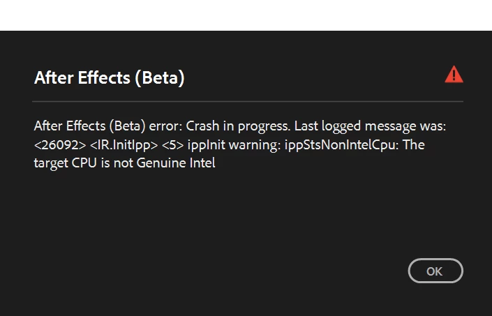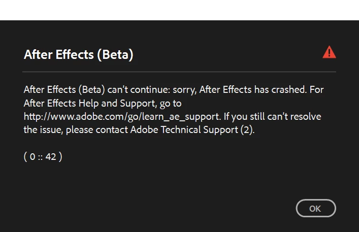 Ae Beta 24.5.0 (Build 38) importing files crash