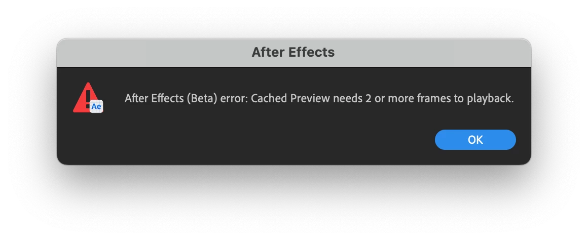 Cached Preview needs 2 or more frames to playback. AE Beta 22.4.0 (Build 10)