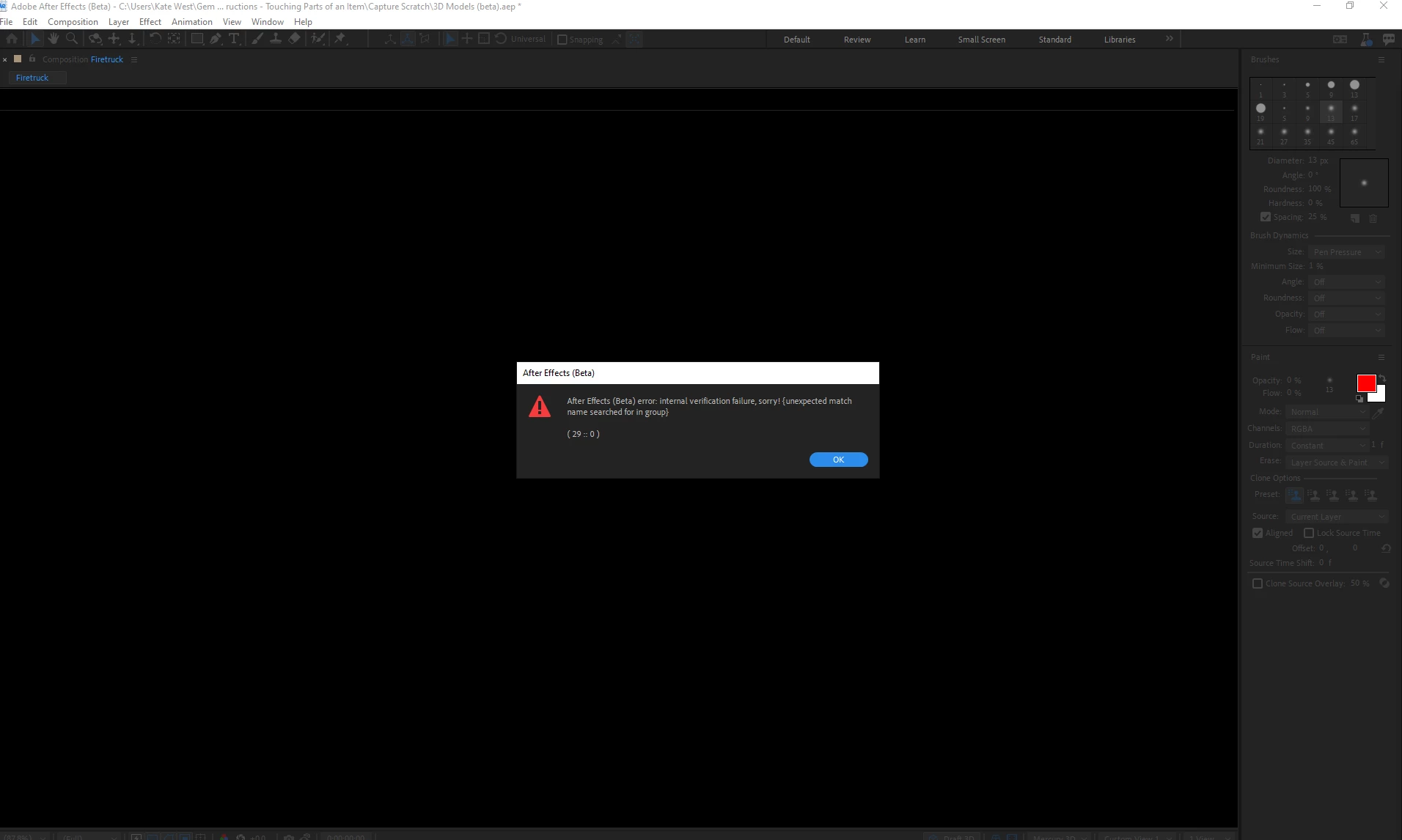 I import the file to AE project and once I drag the file to the timeline it makes an error ( 29 :: 0 ). I just talked to the online assistant but he said that the forum is the only way to fix Beta's issues.