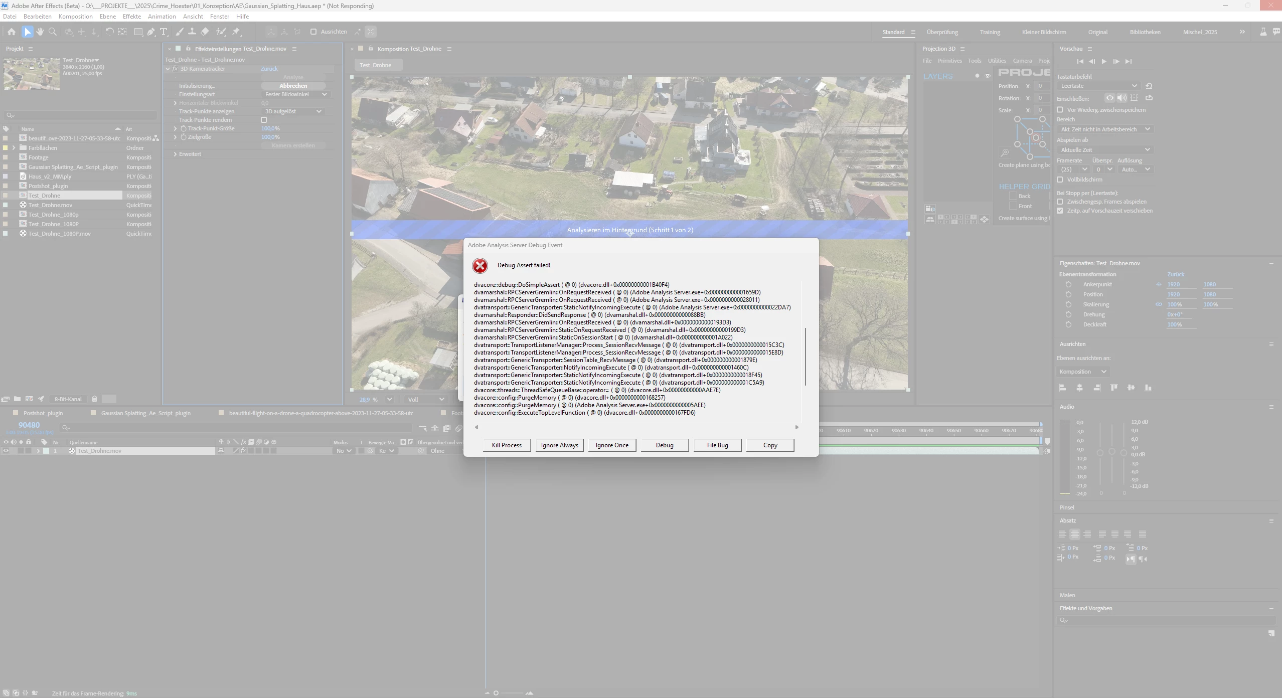 Crash "Adobe Analysis Server" while using 3D-Cameratracker