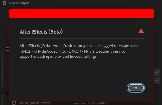 hello ! The error happens when I want to modify the format section (it defaulted to that after I got the error so I didn't go back and configure it) and I export without problems! , but if I enter the format section it happens again (I enter again out of curiosity) my GPU is a GTX 1660! Today a new update of the studio drivers was released, (this happened before I updated, so I have not tried anything with these drivers yet) on the other hand... I am using the latest version of the "Beta" I updated it today , and an error that happened to me was that when I opened the program and started configuring it (I placed a "ScriptUI Panels" and as soon as I put it in, it didn't give me any error message, it just closed! @JohnColombo17100380