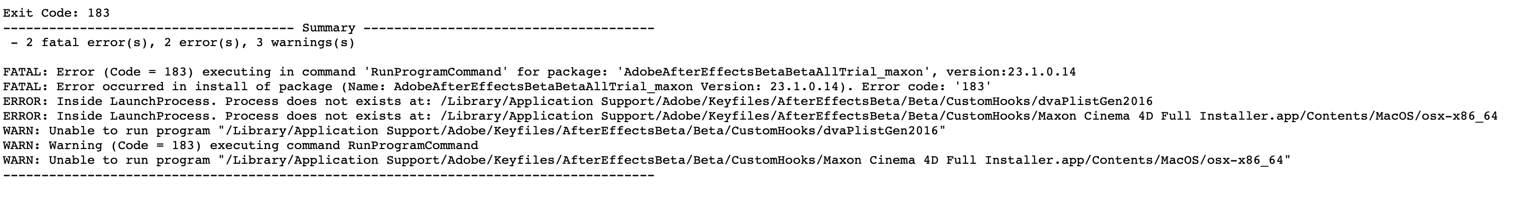 Yesterday I wanted to update Adobe After Effects (beta), but the installation failed. It also uninstalled the old version. I uninstalled the whole Adobe Creative Cloud, and installed it again, but it (the AE Beta version install) still fails.