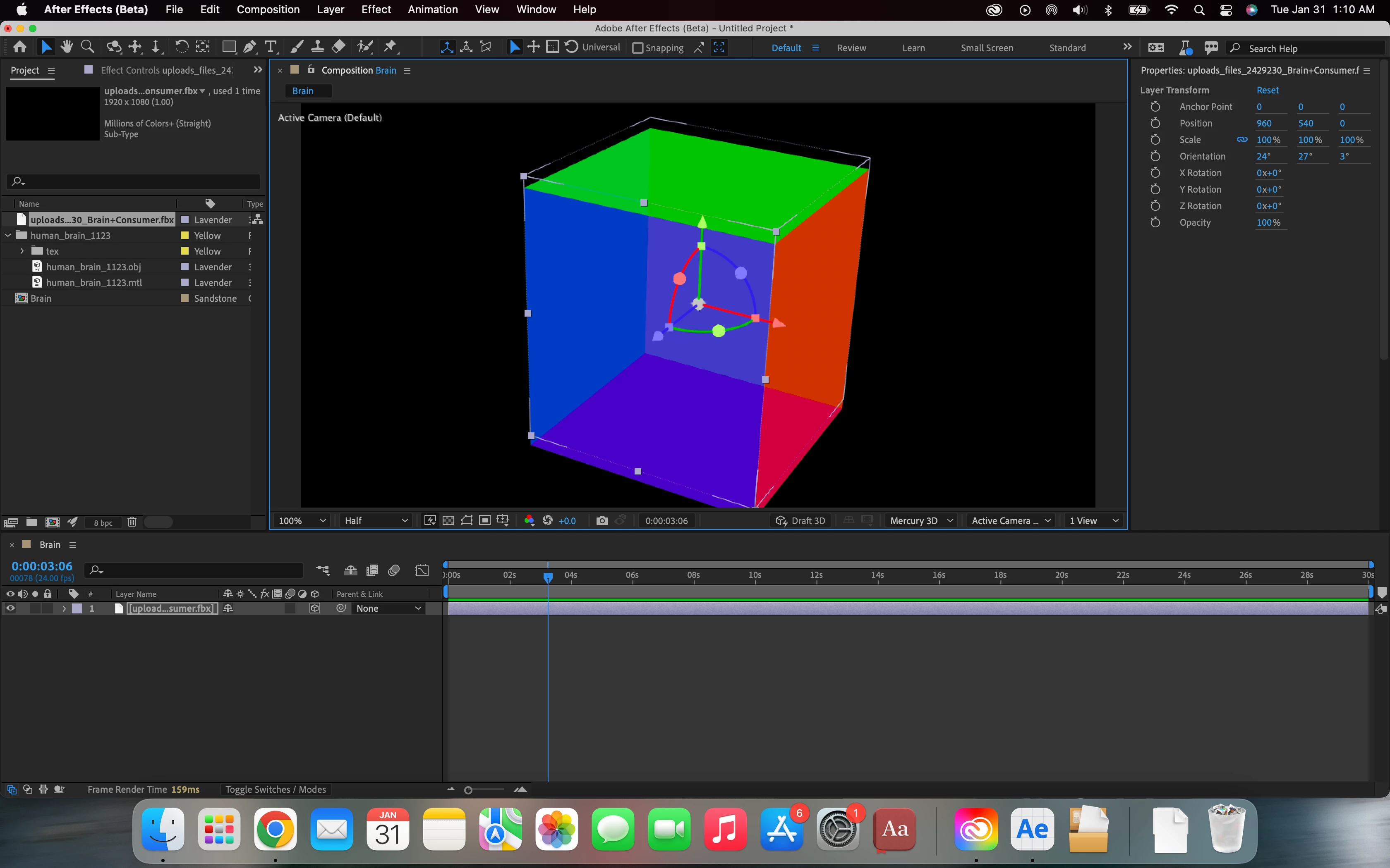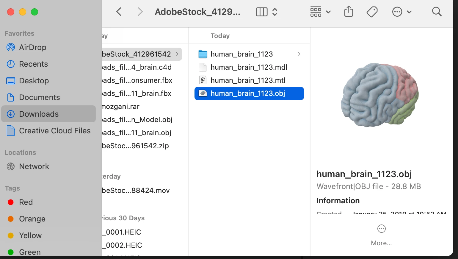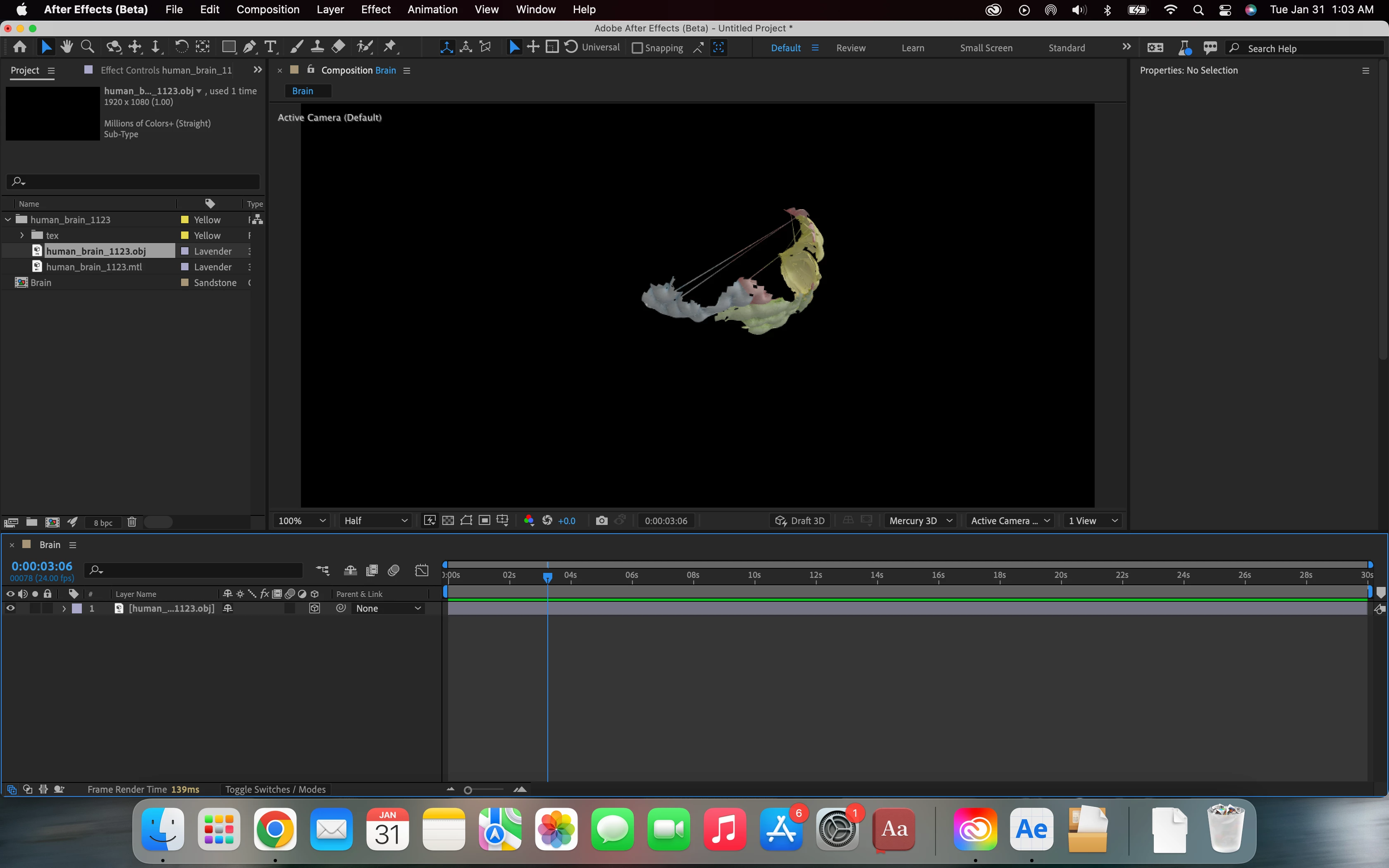 I'm using the latest AE Beta and I downloaded a brain 3D model (obj) from the Adobe stock.