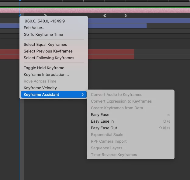 In the latest Beta of AE (21.3 updated 02/03/22) the contextual menu for Keyframe Assistant is missing thje arrow to the Ease Ease, Easy Out, etc.