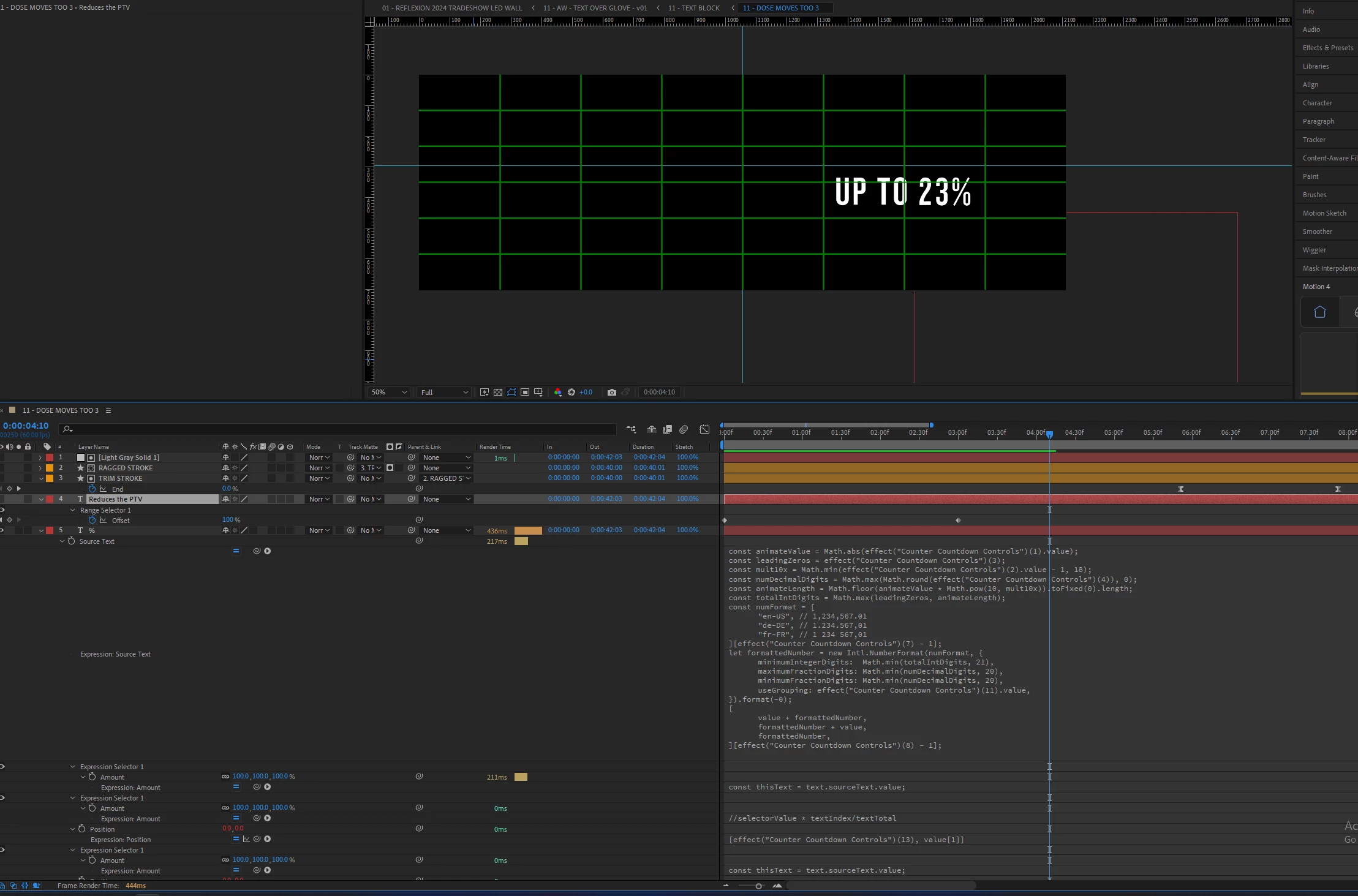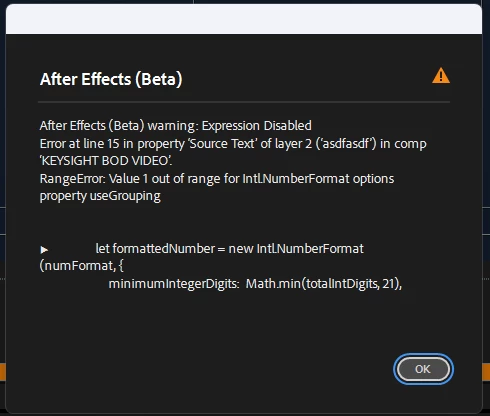 In the 25.00 beta the number counter effect that shipped with 24.5 doesn't work if you check the show group separators checkbox. Still works in AE 24.5.