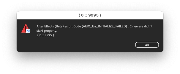 Newest After Effects Beta crashing on startup with "Press OK after Attaching the Debugger"