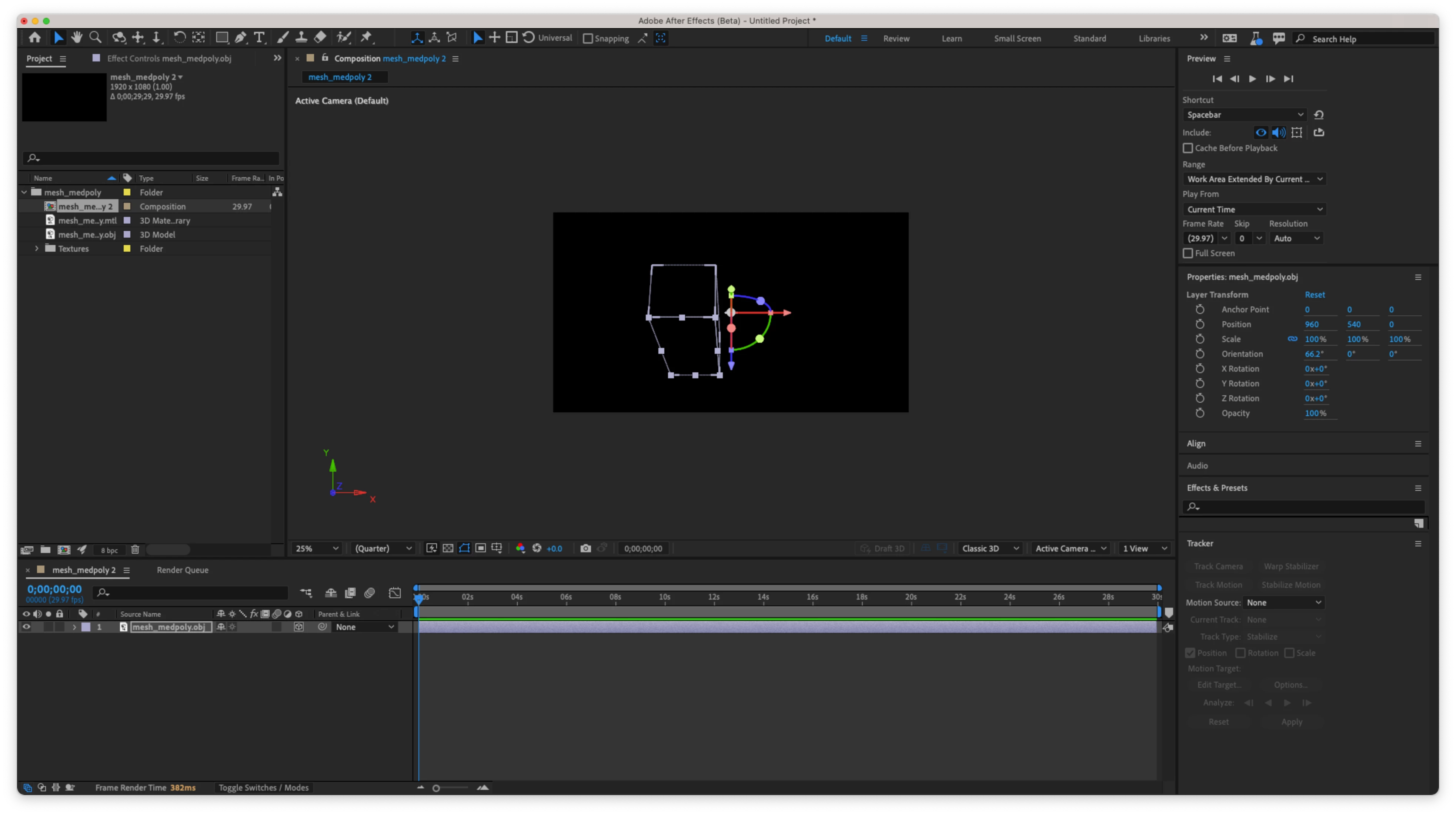 As you can see above I have imported the 3d objects into after effects and it shows that they are in there but I cannot see the the object in the screeen. What should I do to fix this issue