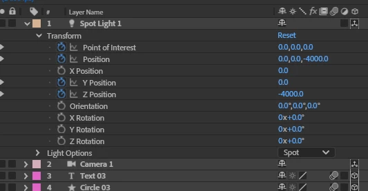 Separating a spotlight's position dimensions keeps the original "Position" thing too