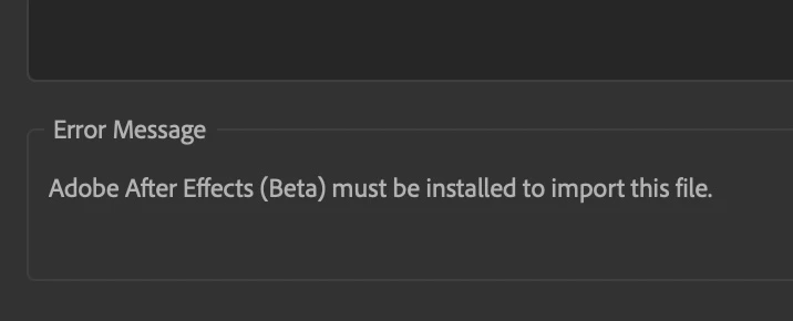I am on a new machine with only uses standard After Effects, the Graphics in Premiere are broken, and when I try to relink them I get the following error. Adobe After Effects (Beta) must be installed to import this file.