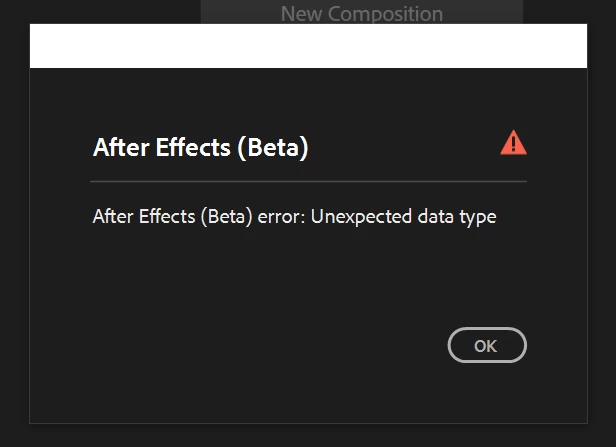 "Unexpected data type" error in After Effects (Beta)