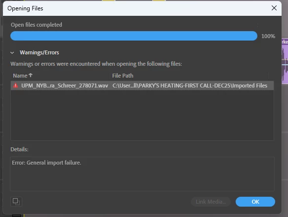 Returned to work from vacation to find Audition had updated itself while I was away. New version is 26.0.0.56 Build. When I try to open sessions I produced in Audition 25.3.0.71, Audition comes up with the Can’t find all Media pop-up and wants me to link to the Media. When I try to link media (even if I manually try to link the media by right-clicking on the clip and selecting Link Media, it doesn’t work. I cannot seem to open old sessions with the new 2026 version.