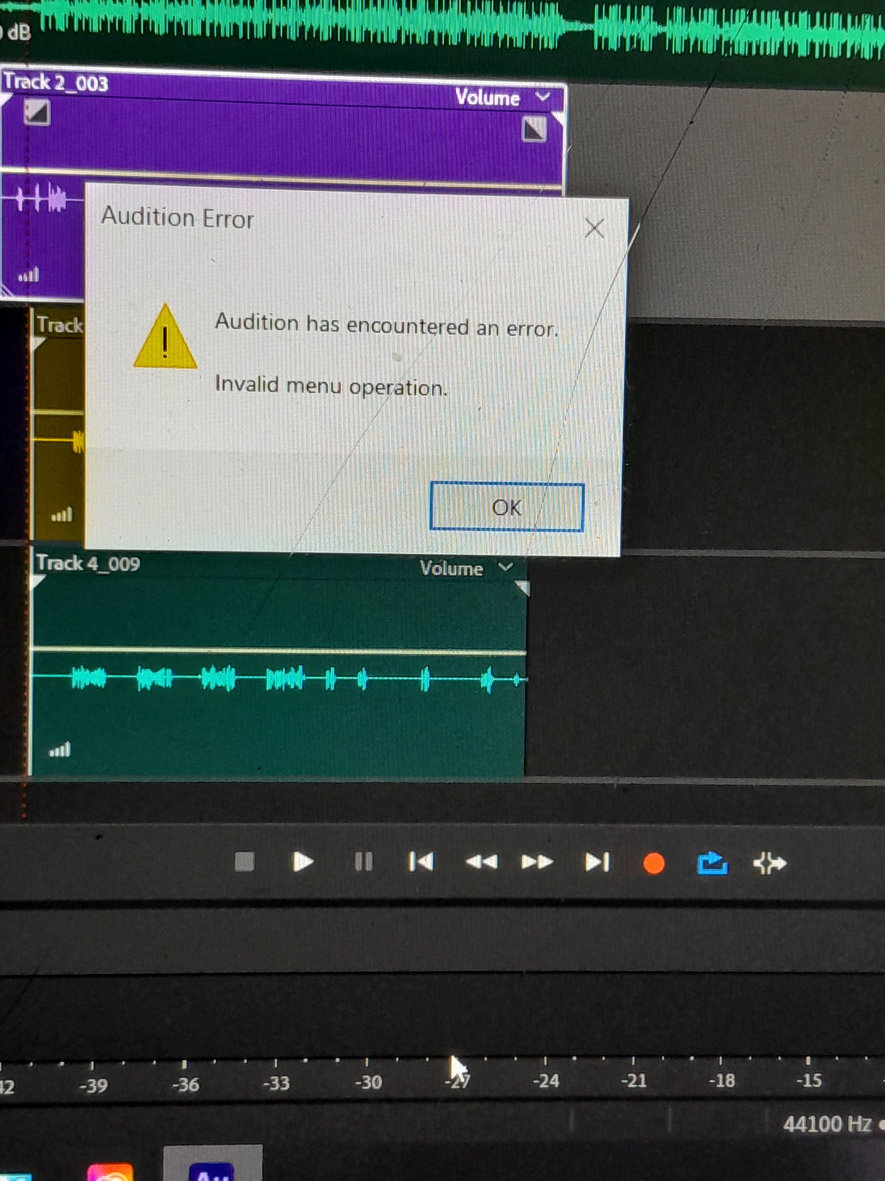 Working on songs with saved presets for mixing but now I can't click presets on the effect rack without seeing this warning "audition has encountered an error invalid menu". Tried about everything to fix the problem but im sure someone might have found a answer for this. Hopefully so. This has became a new thing recently so hopefully this could be fix and could save others who may go through this as well.