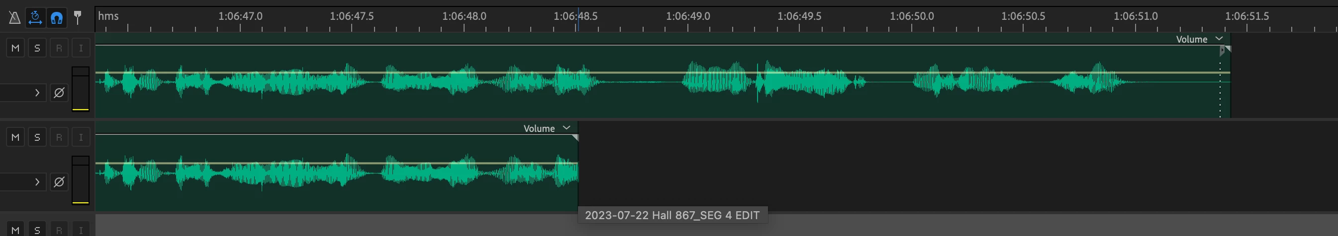 When I begin to create a template for a podcast mix, using Audition 2023, I start with a 'blank' multitrack. I then begin pulling in mp3 files to assemble the final piece and some of these files are being trimmed in the same way a clip would be if the end of the clip was 'pulled in' for a trim in multitrack. This has happened across multiple versions and OS'/machines including PC and Mac and can be as little as a syllable or as long as 4-6 seconds. We have to check EVERY FILE we drag into audition when mixing for this reason.