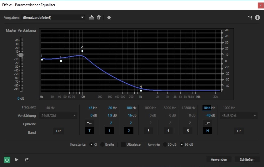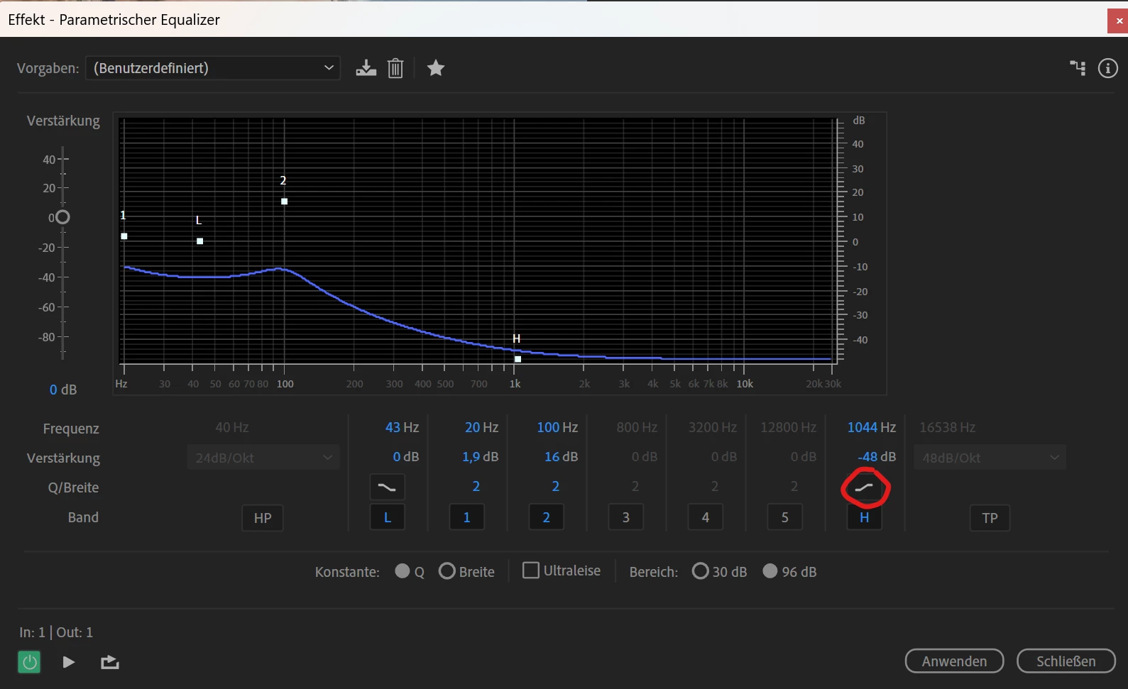 Audition - Parametrischer Equalizer: Shelving Filter lassen sich nicht umstellen