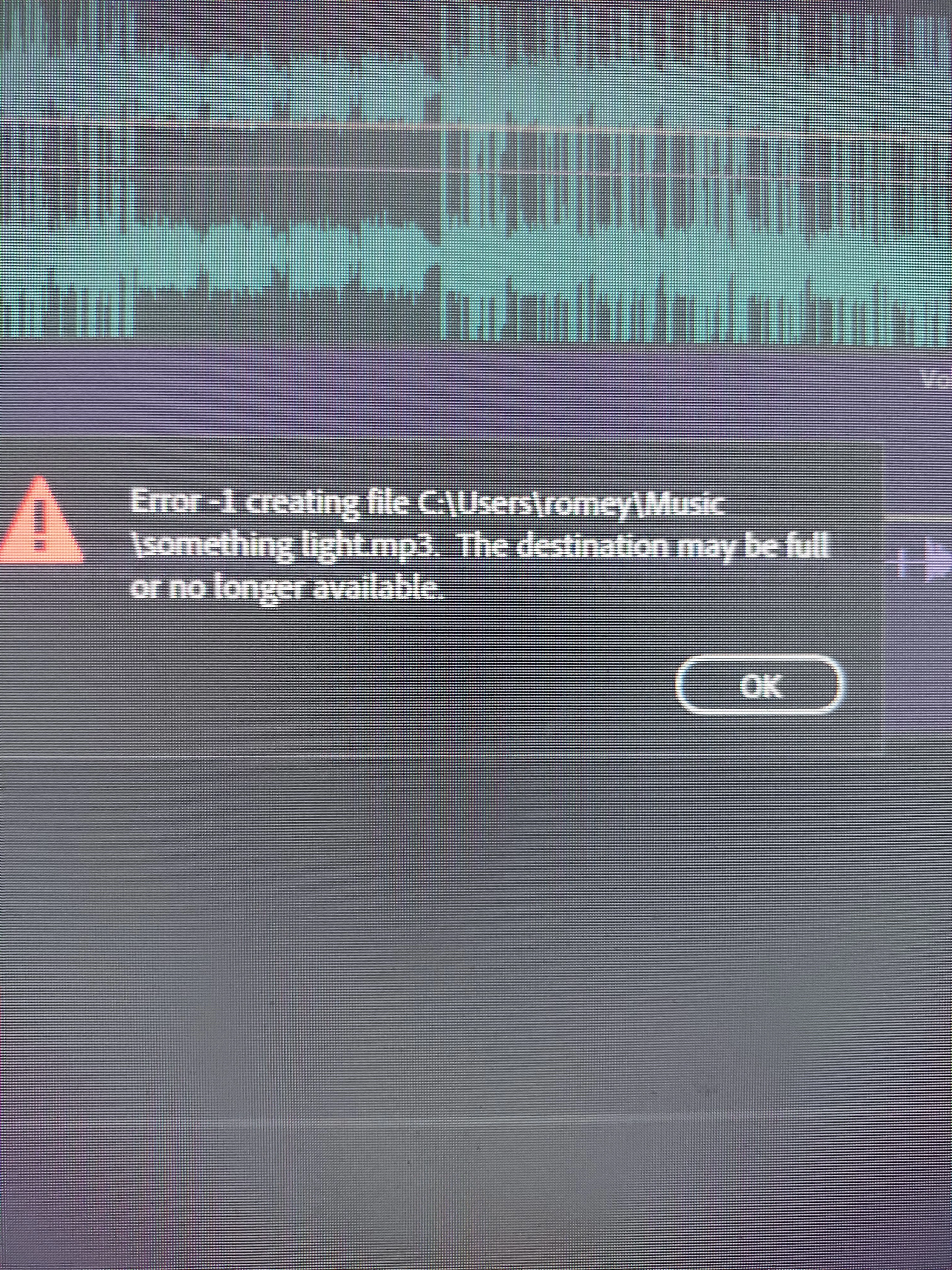 i been having this problem where " Error 1 creating file. The destination may be full or no longer available " pop up after my sessions on Audition. I was wondering what the issue could be? or how i can go about solving it, any help would be grateful, thanks