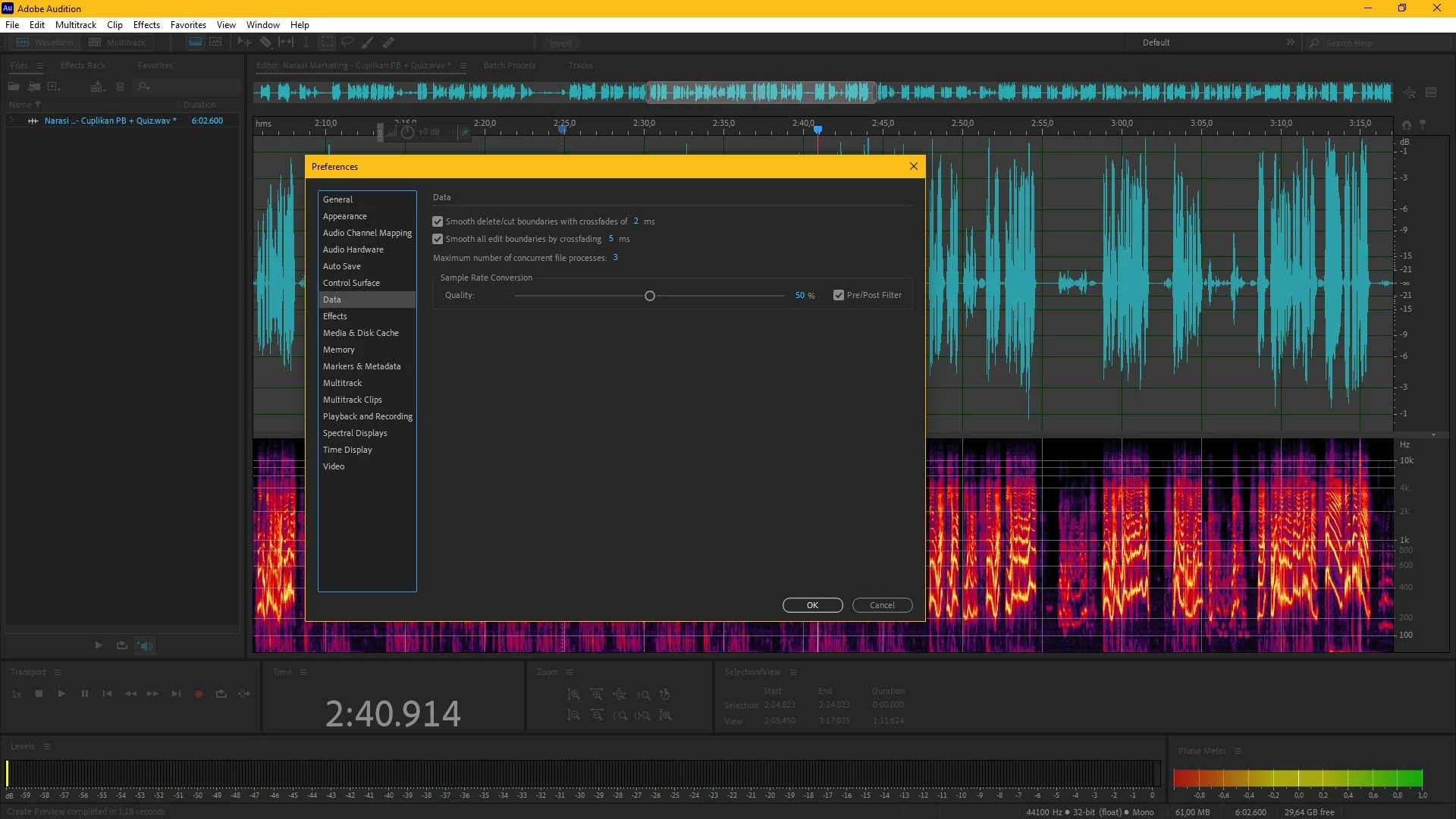 4. I expected the result audio should be without any change or glitch, but the actual result has some glitch that suspectedly is cuts or fragments from the other file.
