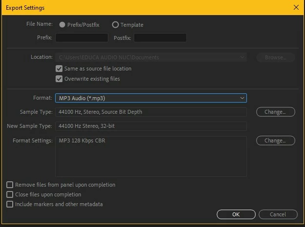I Tried to export multiple wav files in batch process. One of the files is (bica_6b.wav).