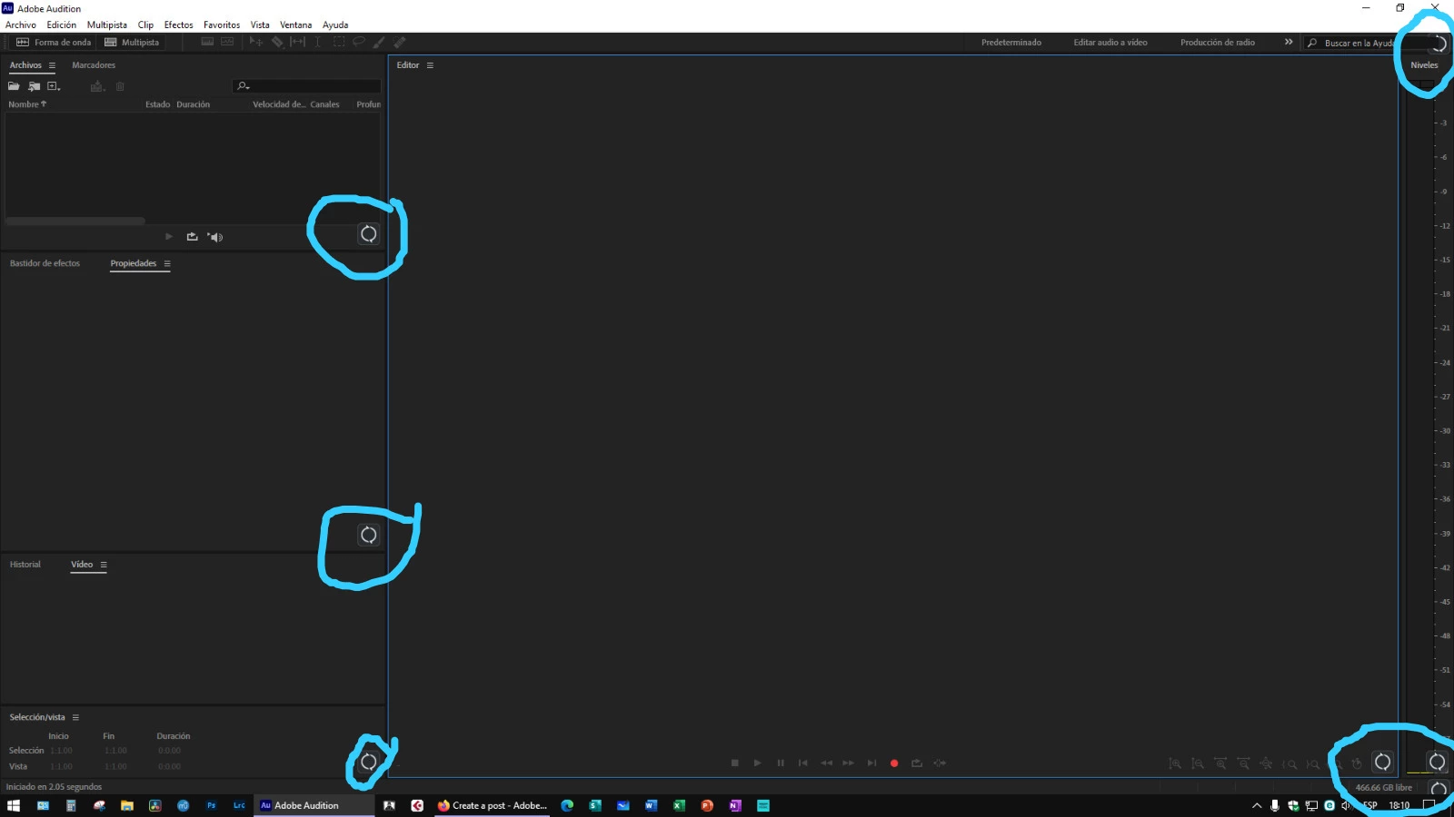 I have just install Audition and I am new using the app. How can I remove these little icons that get in the way and appear on each of the panels. I can not see claraly all my tools in every corner and it is very uncomfortable. Below you can see a capure. Thanks you very much.