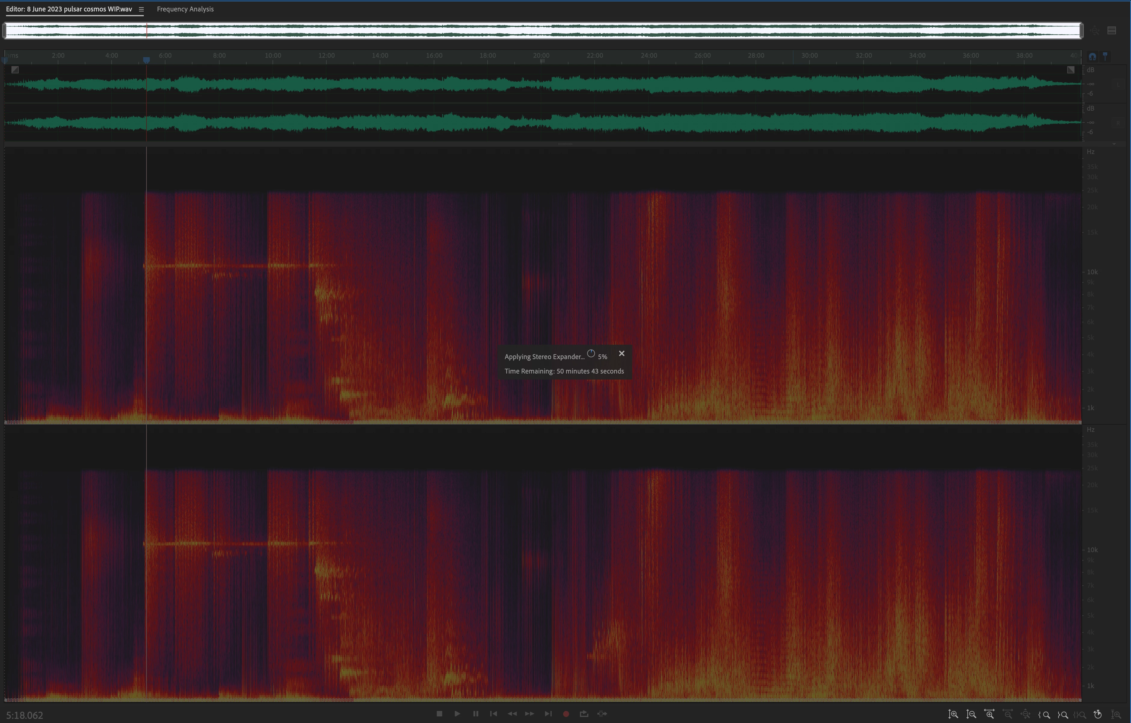 I routinely use the Stereo Expander tool to make the low end frequencies mono (I'm recording performances with effects, so I like to get the low end under control). I tend to work with long files that I then edit down to more reasonable lengths; previously, using Stereo Expander on the low end might take three or four minutes. Now it is taking about an hour—NOT exaggerating.