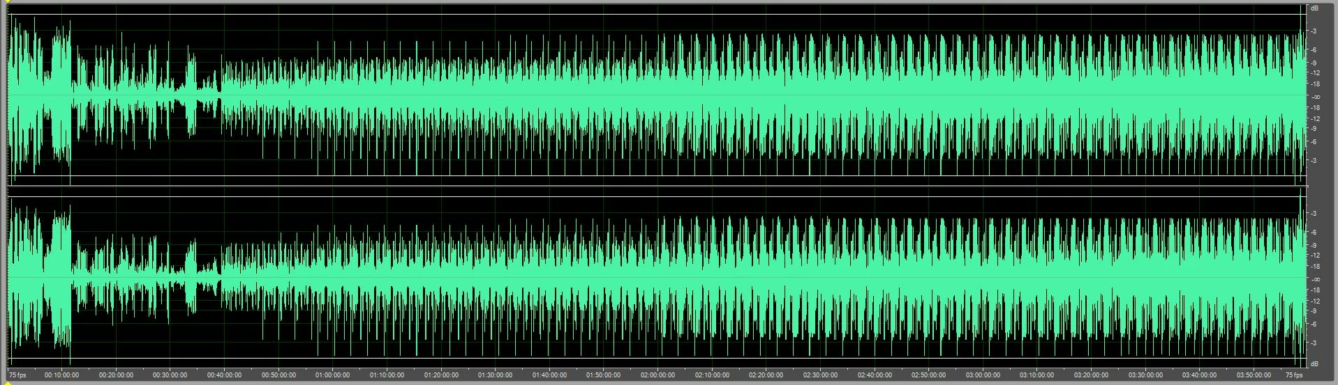 I have attached a screen-grab of the entire waveform demonstrating this, plus a short mp3 sample of some 15 minutes duration which shows the onset of the problem at around 4m40 on the sampled clip.