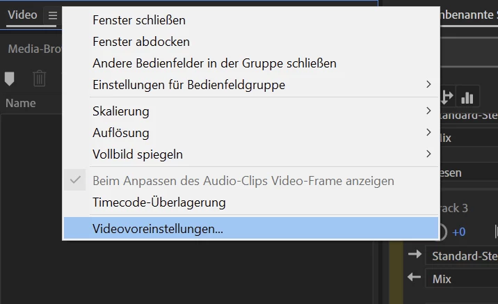 Also when clicking on the "Sandwich-Menu" there is an entry "Videovoreinstellung" (in German, in English its something like Video Pre-requirements) and it will lead to the Options Panel and there to the Graficscard Option and the Viewig Options.