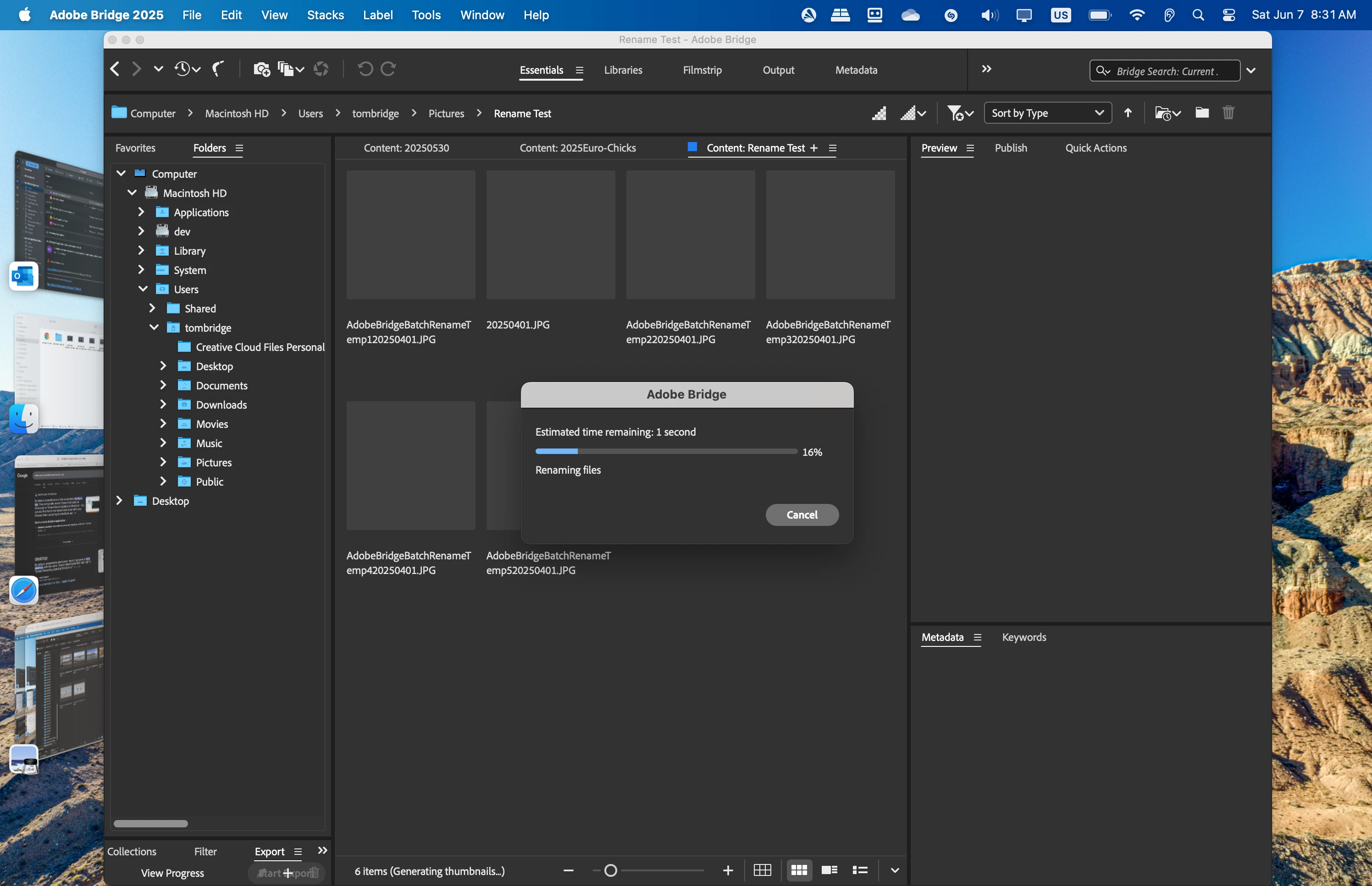 When I batch rename on my Mac it will not complete the task. I have to cancel it and what is left are files titled "AdobeBridgeRenameTemp" then a number. As of this writing everything is the latest version. Mac is Apple chip m3 max Sequoia 15.4.1. This should work. Please help or fix. Thanks Tom