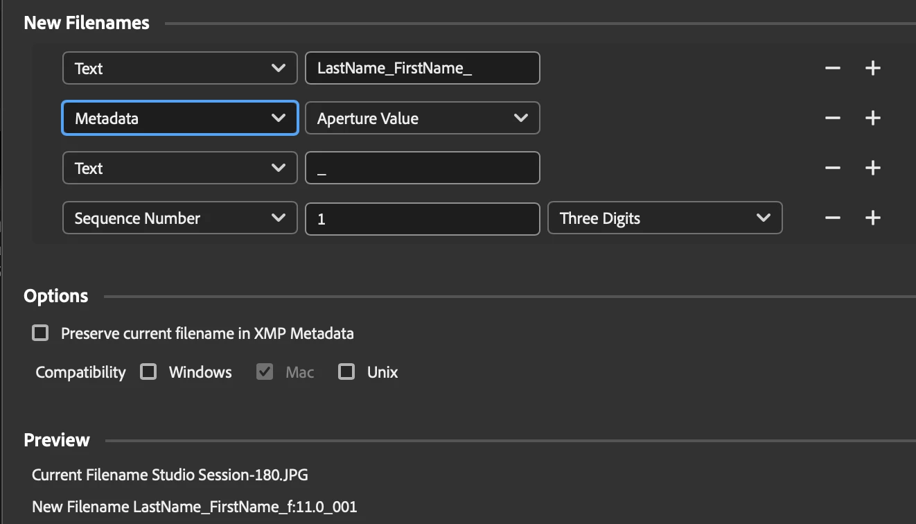 When you select Metadata as a filename option and use Aperture, it deletes the file extension. None of the other Metadata options generate this problem.