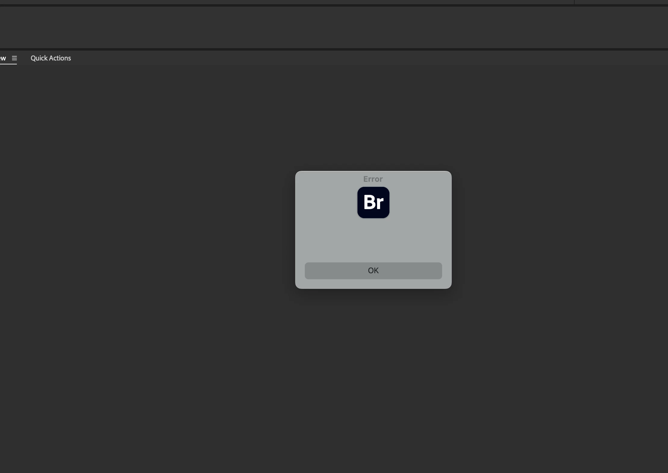 This is the unhelpful error message. Clicking on OK clears the message and Bridge then crashes.