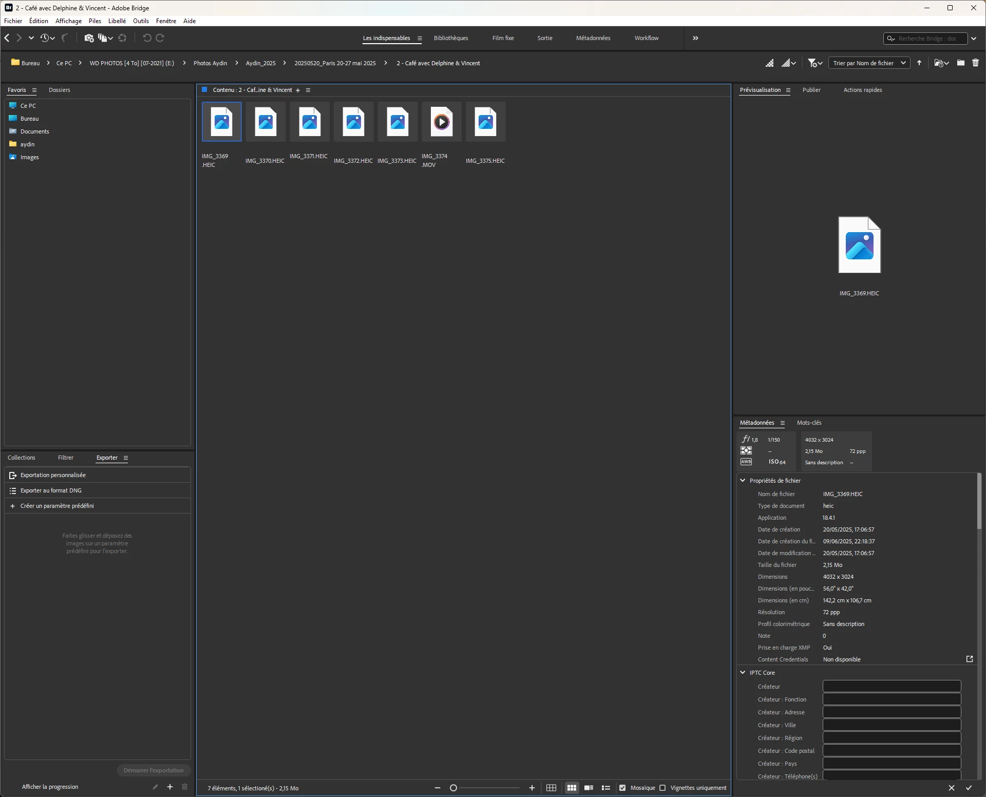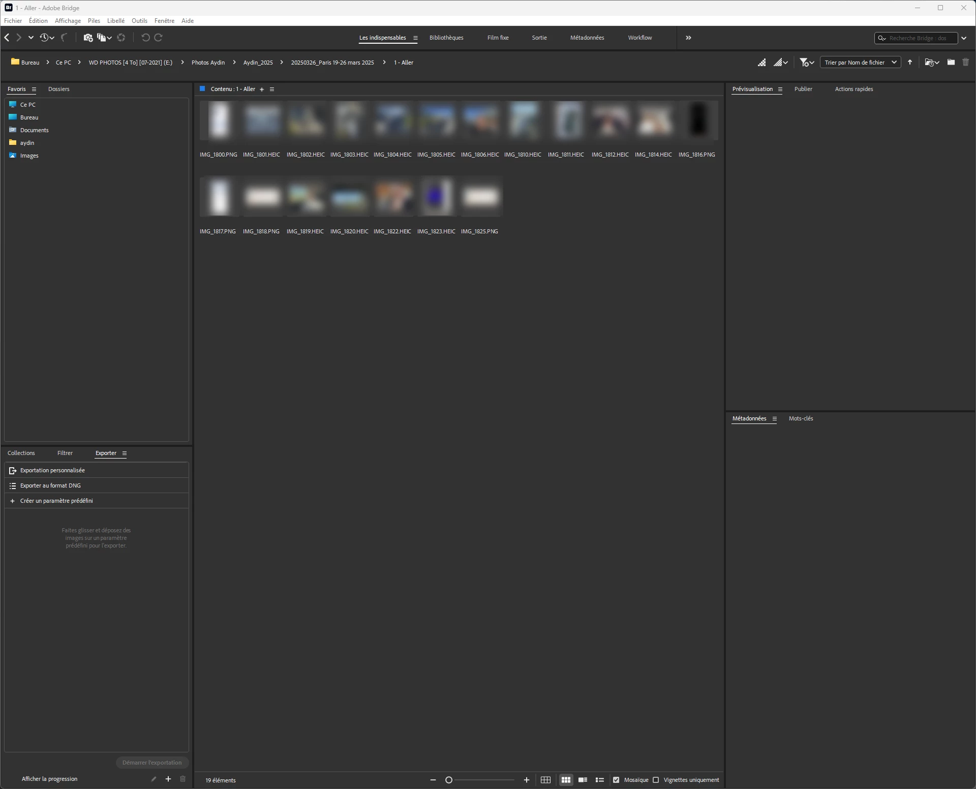 **Issue**: In Adobe Bridge 2026 (version 16.0.2.23), HEIC files (iPhone photos, identical auto-numbering) display perfectly (thumbnails + preview) in some folders, but completely fail (no thumbnails OR preview) in other folders on the same internal drive. Windows Explorer and Photos app read ALL HEIC files without issue. **Configuration**: - Windows 11 25H2 (latest) - Extensions installed: HEIF Image Extension (1.0.51005.0) + HEVC Video Extension (free device manufacturer 3.0.8.564 + paid version tested then removed) - Bridge fully reset (Ctrl+Alt+Shift), cache purged multiple times (all, per folder, per selection) - Preferences adjusted: Max file size 5000MB, cache 100GB, high quality - Files local on internal drive (not OneDrive/NAS), simple names no accents/special chars - Tested: Refresh (F5), move folders, antivirus disabled **Steps tried (all failed)**: - Uninstall/reinstall HEIF/HEVC (PowerShell for invisible HEIF) - Full Bridge reset - Increase cache/thumbnail limits - Purge + F5 per folder - Reinstall extensions in both orders (HEVC first, HEIF first) **Key observation**: Problem is selective - one HEIC folder works perfectly, next identical folder fails completely. Not codec issue (Windows works everywhere) nor pure cache issue (purge has no effect). Can you confirm if this is a known HEIC bug on Windows and plan a fix? Thank you. **Full config**: - Windows 11 [Pro/Home] 25H2 (build #?) - Bridge 16.0.2.23 (2026)