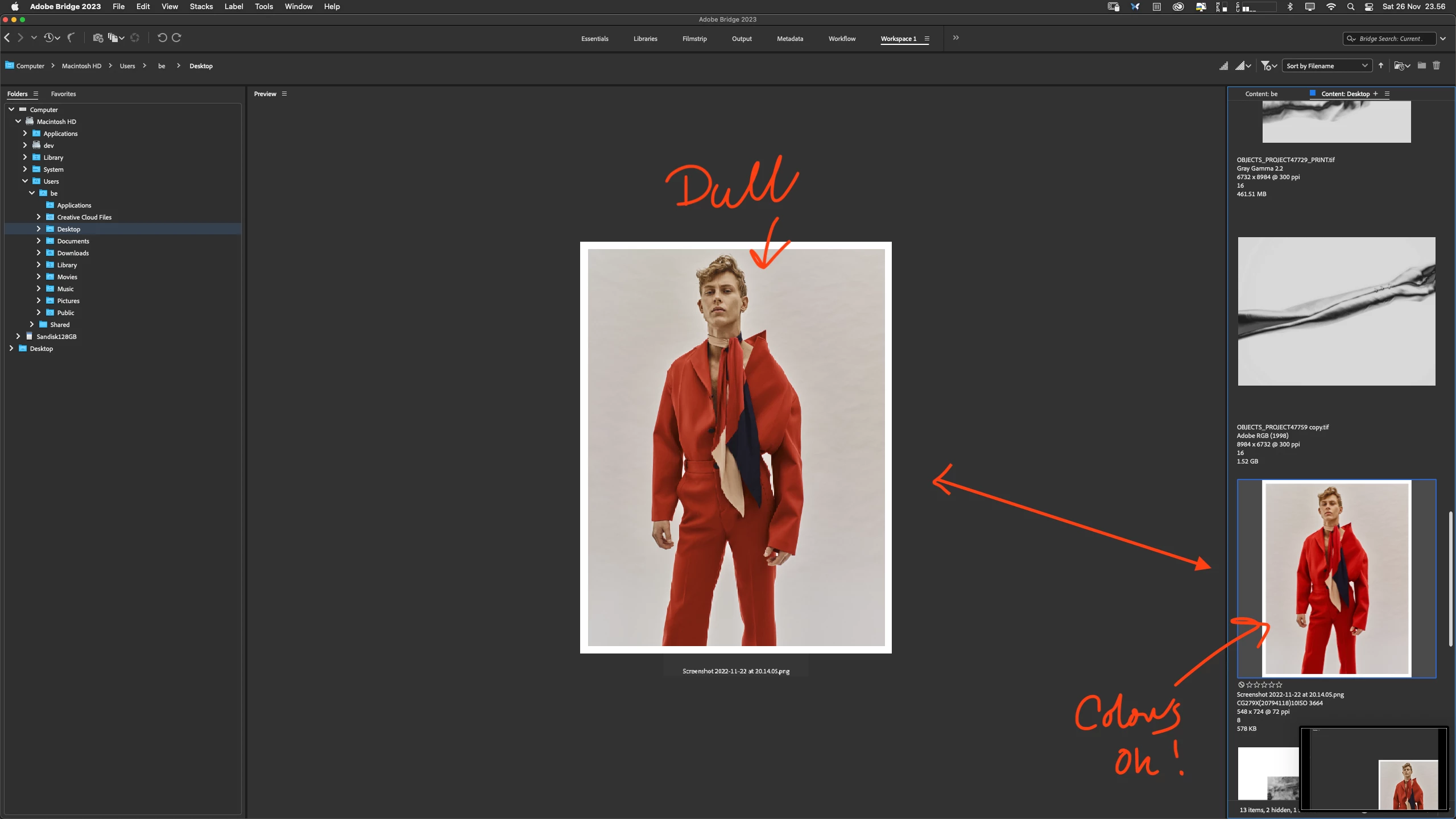 Bridge 2023 does not show proper color profile in its Preview panel.. All files no matter extension (pdf, jpg,tiff,psd all) look dull in the preview window/pane. I have attached proof. It also doesn't matter if files are color managed. All colro pictures looks extra desaturated in the preview window, but look correct in the content window as you can see in my screenshot. (color management IS ticked in preferences btw).