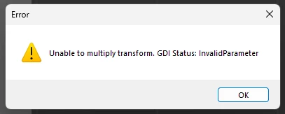 Error: "Unable to multiply transform. GDI status: InvalidParameter"